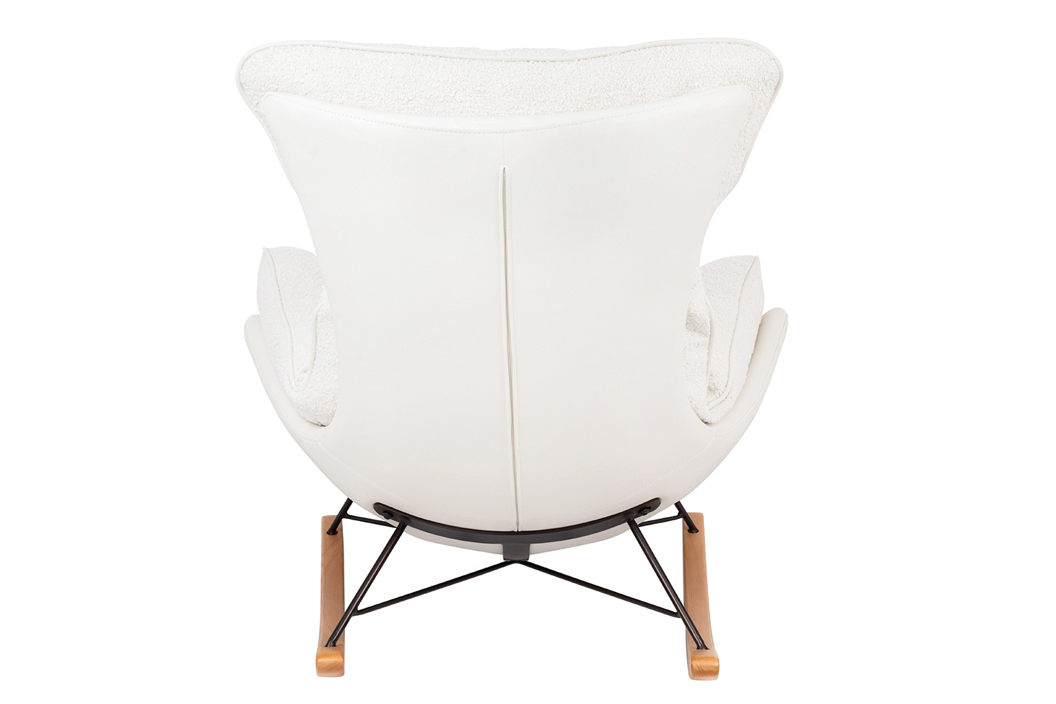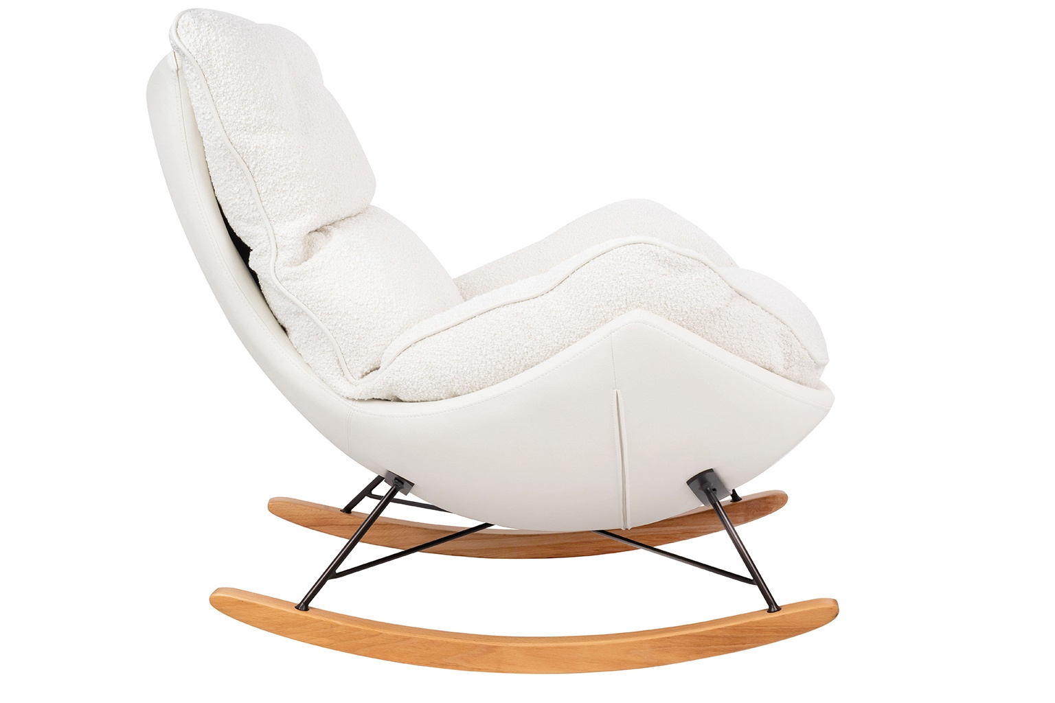 - Fotel bujany OTILIA TEDDY. Metalowy korpus fotela tapicerowany ekoskórą w kolorze białym. Niezwykle miękka poduszka obszyta tkaniną teddy (95% poliester, 5% akryl), oprócz przytulnego designu cechuje się również niesamowitą wygodą. Dębowe płozy potęgują k