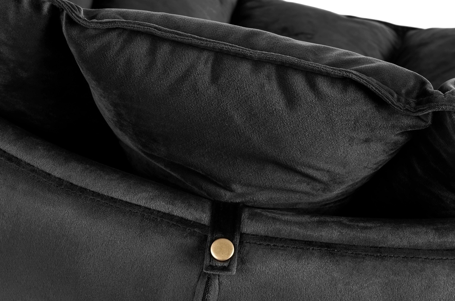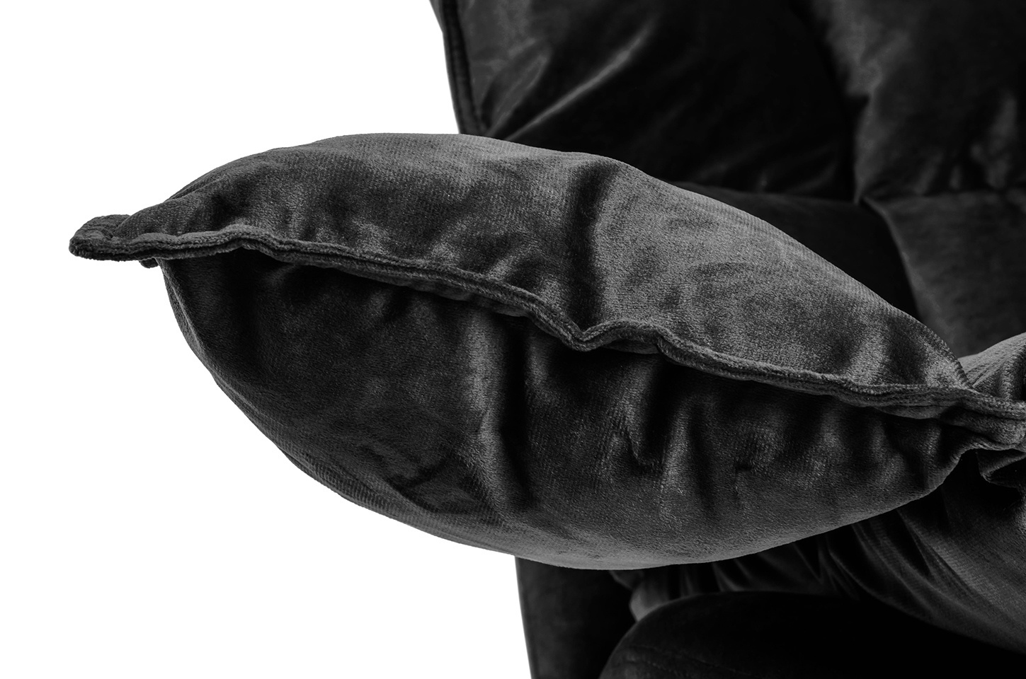 - Fotel bujany SWING VELVET czarny. Metalowy korpus wraz z poduszką tapicerowany jest materiałem welurowym o pluszowej strukturze. Miękką, aksamitną poduszkę o charakterystycznym pikowaniu można w łatwy sposób odpiąć od korpusu. Stelaż ze stali chromowanej