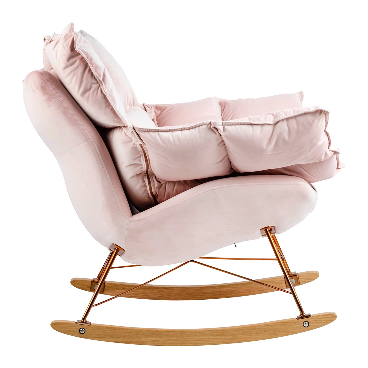- Fotel bujany SWING VELVET jasny róż. Metalowy korpus wraz z poduszką tapicerowany jest materiałem welurowym o pluszowej strukturze. Miękką, aksamitną poduszkę o charakterystycznym pikowaniu można w łatwy sposób odpiąć od korpusu. Stelaż ze stali w kolorze