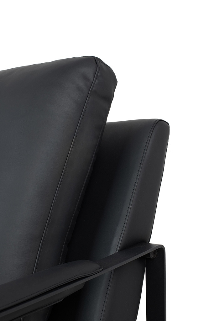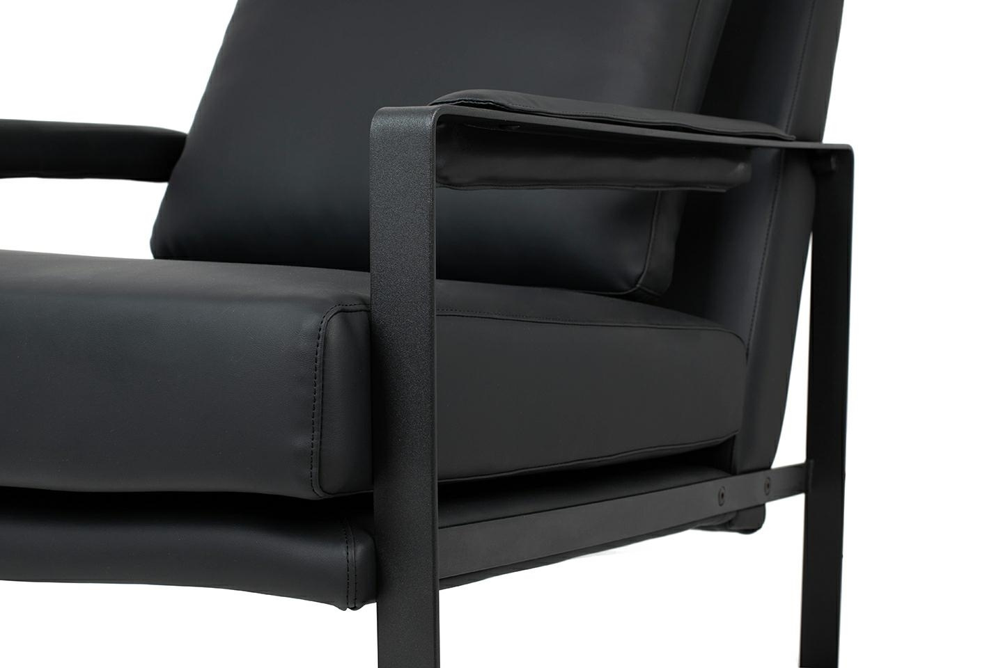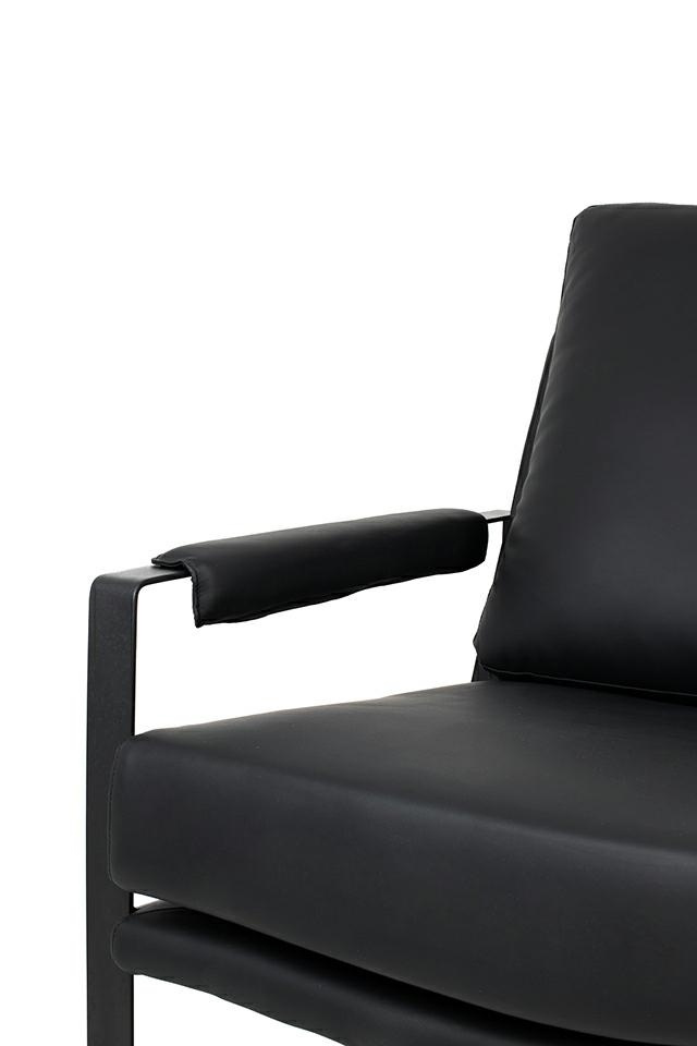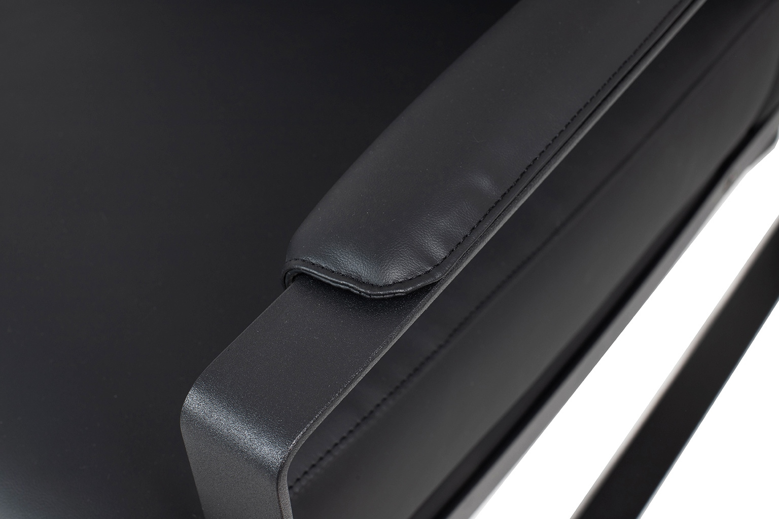 - Fotel CAPITAN czarny PU. Klasyczny fotel z podłokietnikami w uniwersalnym kolorze tapicerowany ekoskórą z podstawą wykonaną z malowanego na czarno metalu. Poduszka w zestawie oprócz wizualnej dekoracji reguluje głębokość siedziska, co poprawia komfort uży