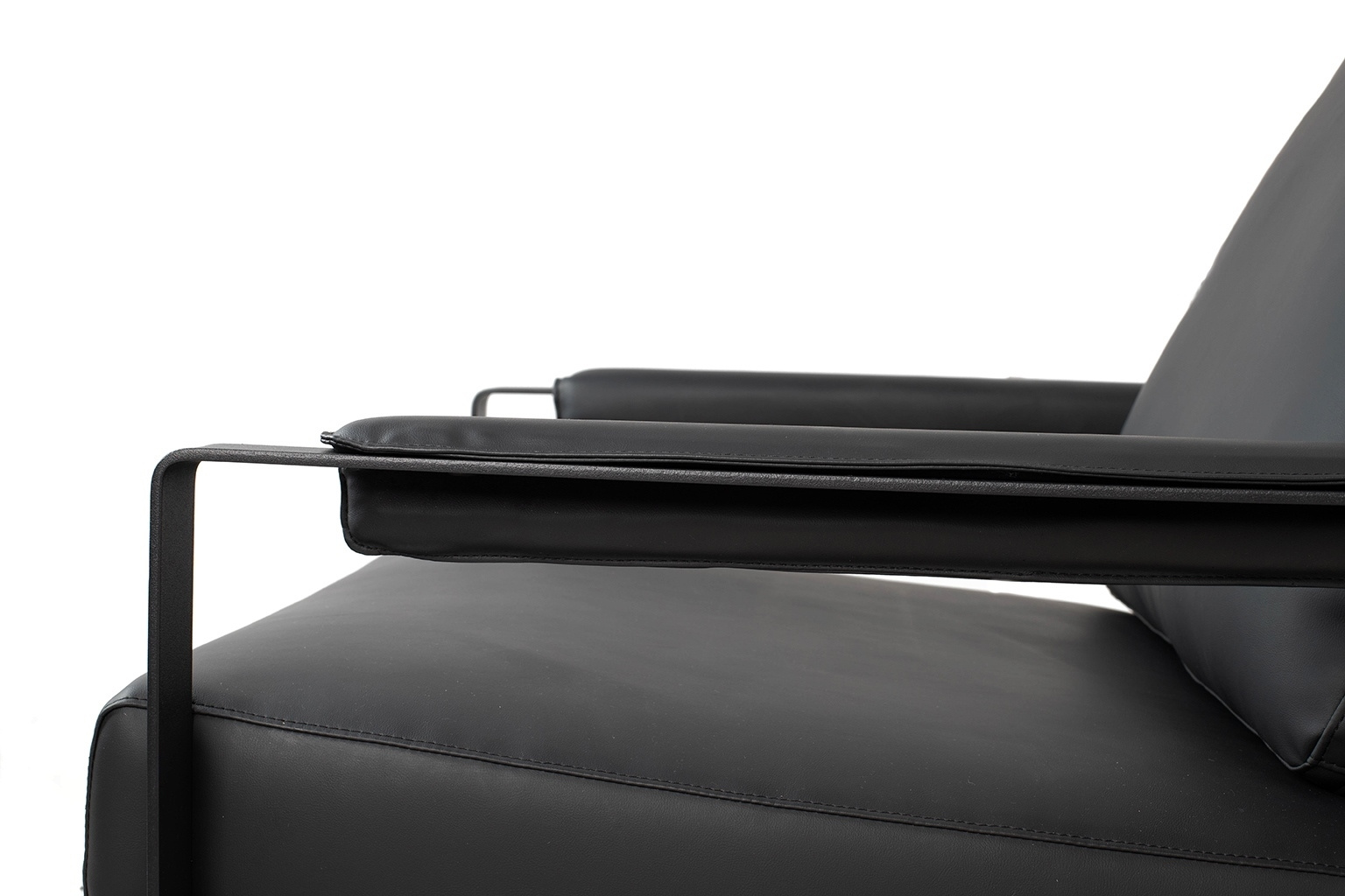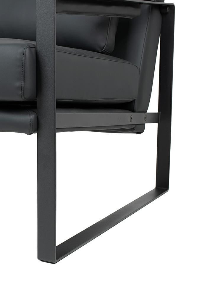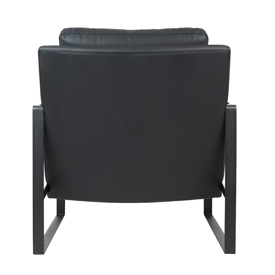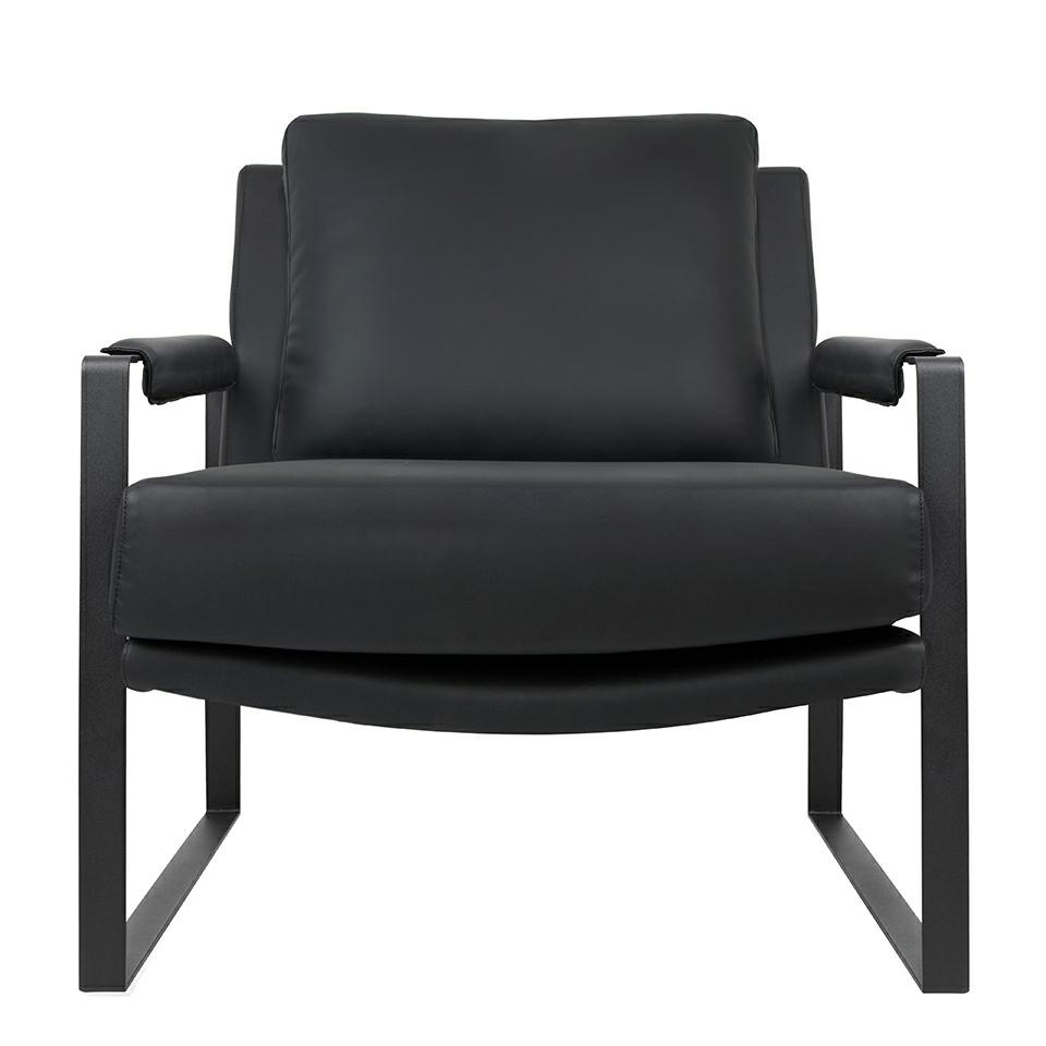 - Fotel CAPITAN czarny PU. Klasyczny fotel z podłokietnikami w uniwersalnym kolorze tapicerowany ekoskórą z podstawą wykonaną z malowanego na czarno metalu. Poduszka w zestawie oprócz wizualnej dekoracji reguluje głębokość siedziska, co poprawia komfort uży