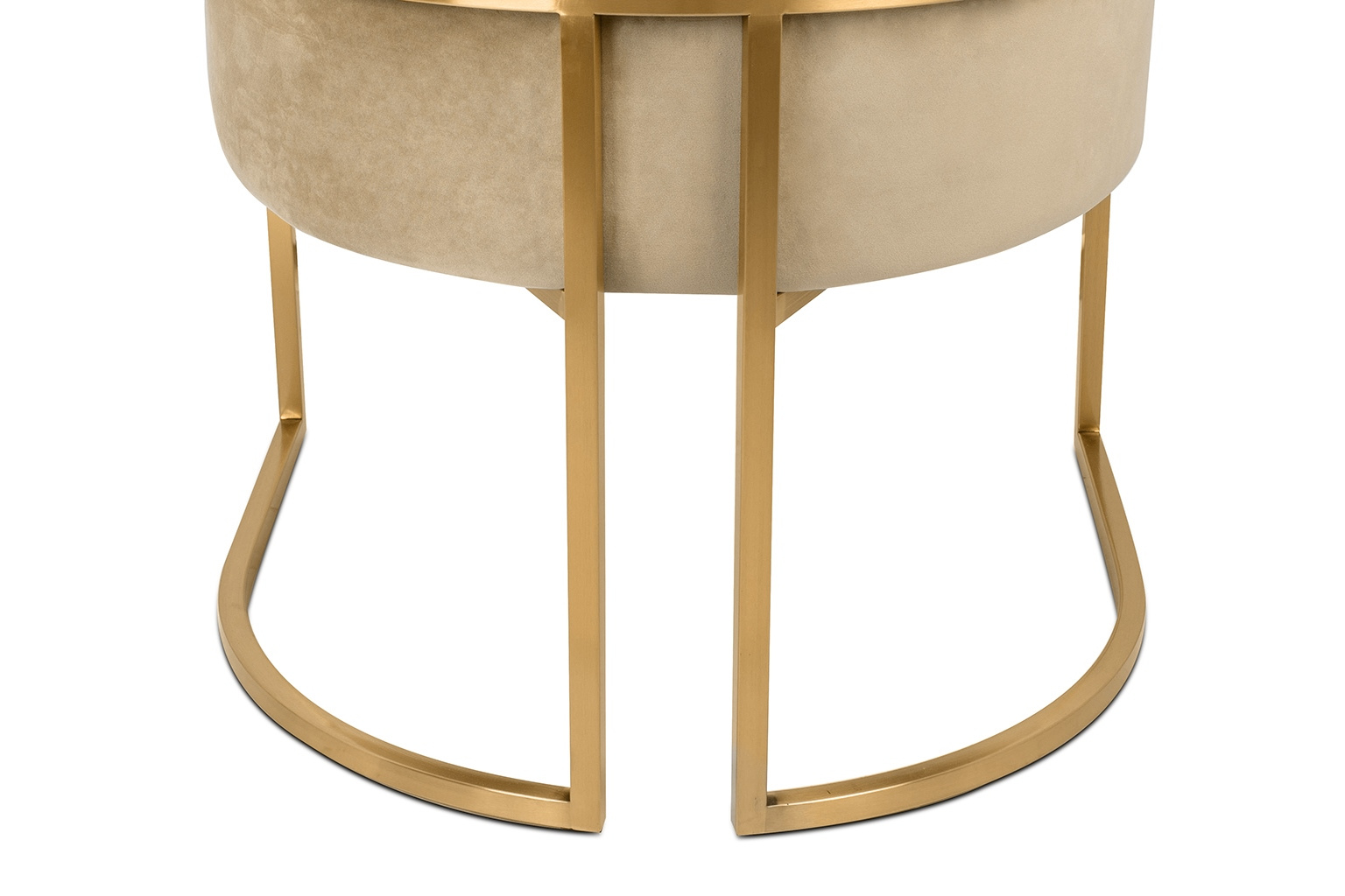 - Fotel CHLOE. Siedzisko oraz poduszka tapicerowane są aksamitnym welurem w kolorze khaki. Metalowa podstawa w kolorze złotym podkreśla nowoczesny styl fotela. Możliwość personalizacji obicia oraz wyjątkowy design sprawia, że Chloe doskonale odnajdzie się w