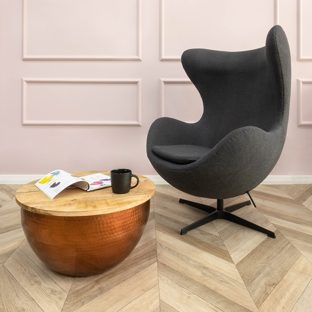 - Fotel EGG CLASSIC to klasyka sama w sobie. Jeden z najbardziej znanych kształtów fotela. Fotel tapicerowany jest wełną kaszmirową (70% wełna naturalna, 30% poliester). Tkanina ta słynie z wyjątkowej wytrzymałości. Fotel wyposażony jest w mechanizm obrotow