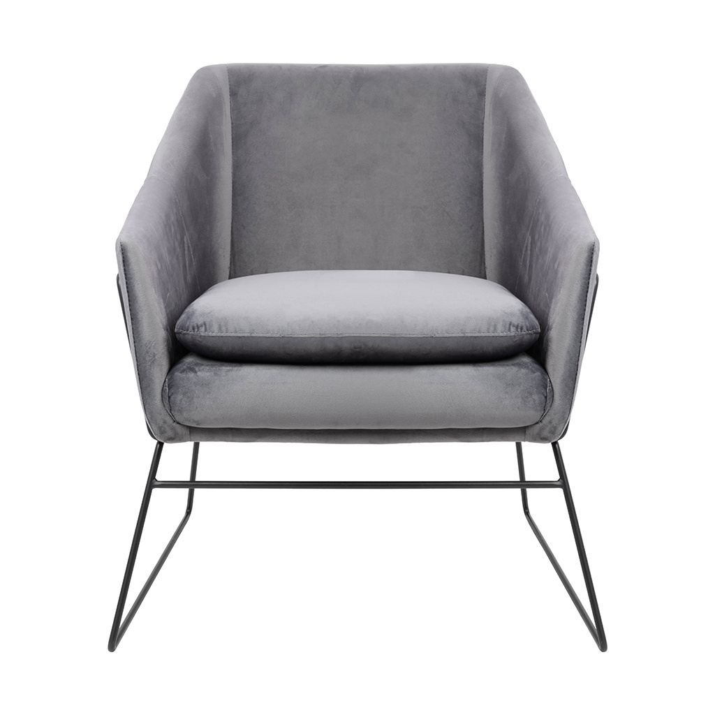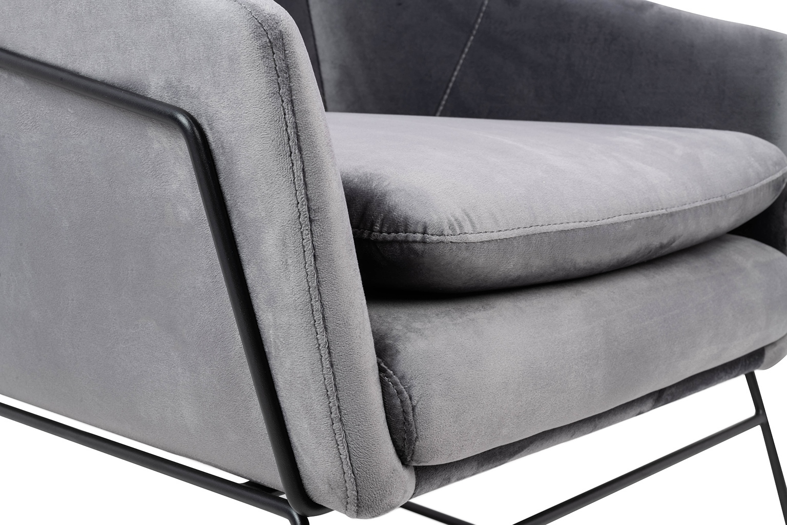 - Fotel EMMA. Siedzisko oraz poduszka tapicerowane są aksamitnym welurem w ciemnoszarym kolorze. Metalowa podstawa lakierowana na kolor czarny nadaje Emmie oryginalnego charakteru. Możliwość personalizacji obicia, wyjątkowy design oraz solidne wykonanie spr