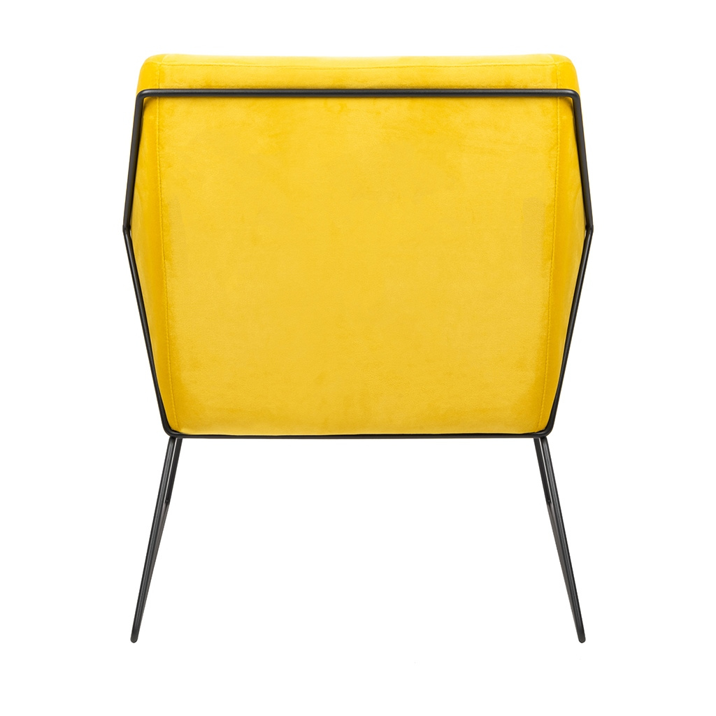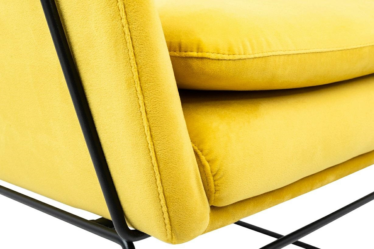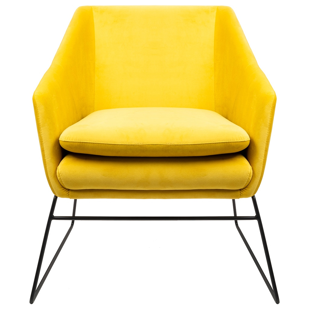 - Fotel EMMA VELVET żółty - welur, metal. Połączenie nowoczesnego stylu, komfortu i wyjątkowego wzornictwa. Metalowa podstawa lakierowana na kolor czarny nadaje całości wyrazistego, oryginalnego charakteru. Siedzisko oraz poduszka tapicerowane aksamitnym we