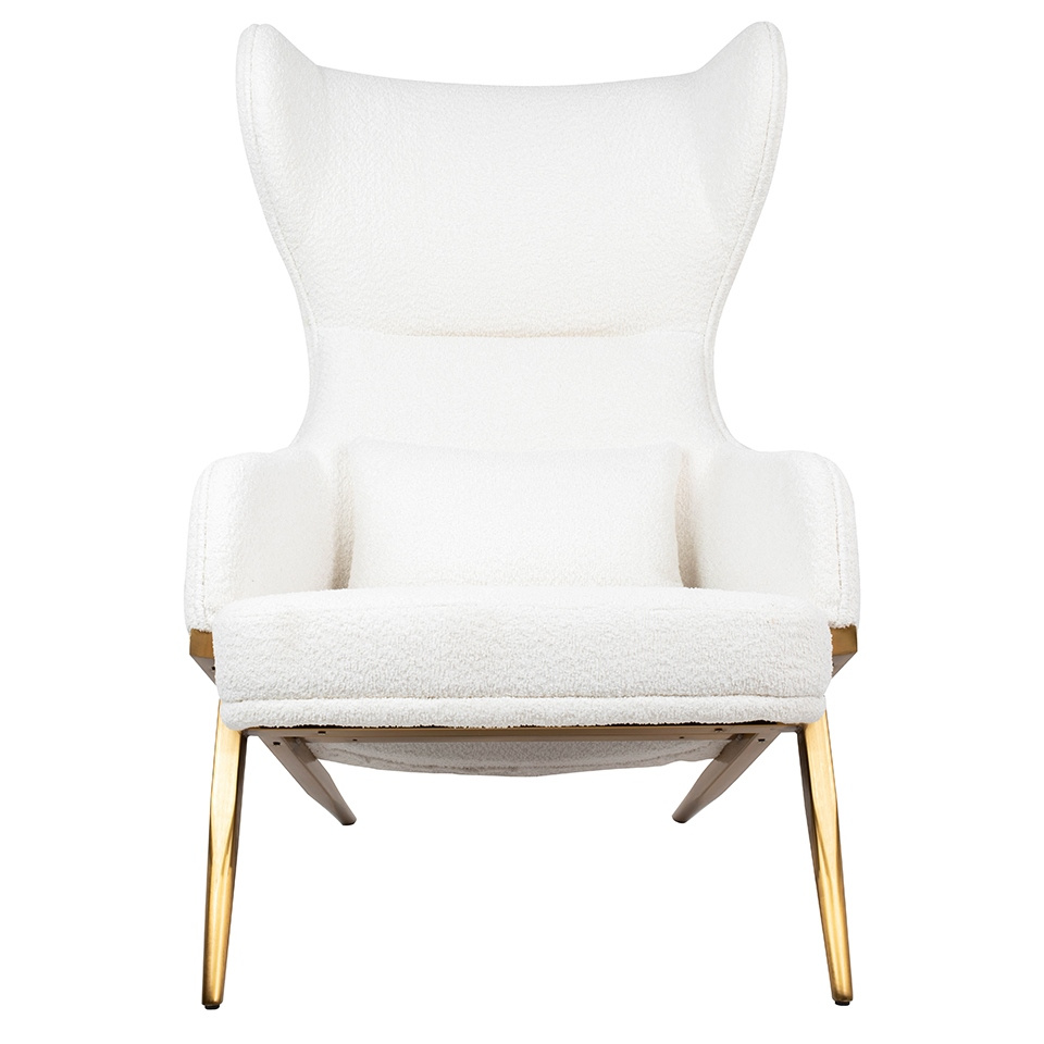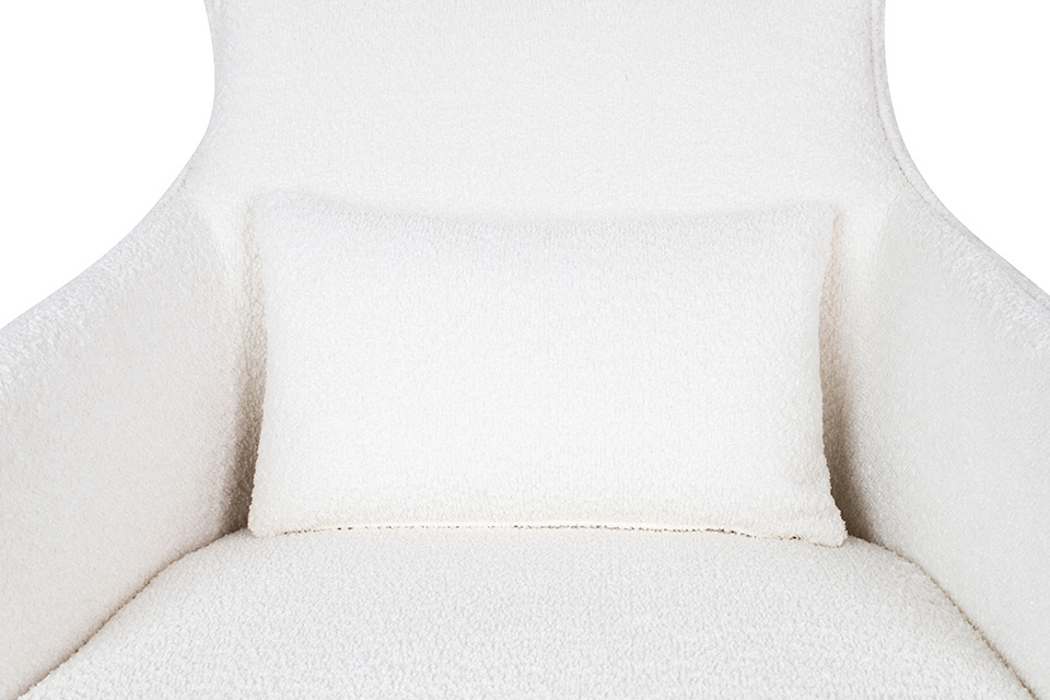 - Fotel HAMPTON TEDDY biały. Wygodny fotel w miękkiej i przyjemnej w dotyku tkaninie teddy wykonanej z poliestru (95%) oraz akrylu (5%). Metalowa podstawa o ciekawym kształcie w kolorze złotym podkreśla nowoczesny charakter fotela. Wyjątkowy design oraz sol