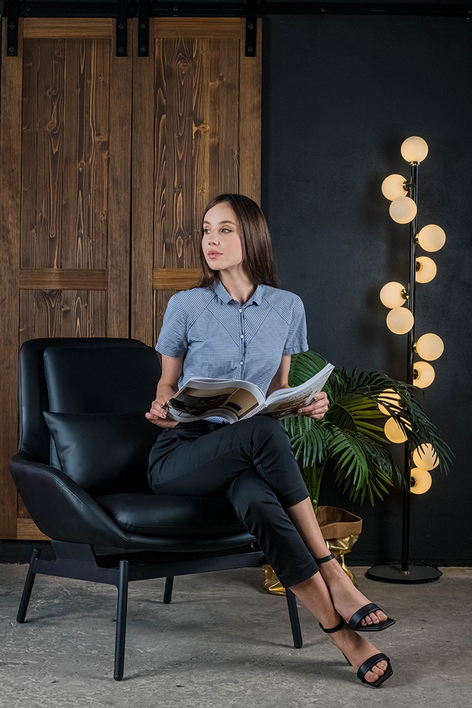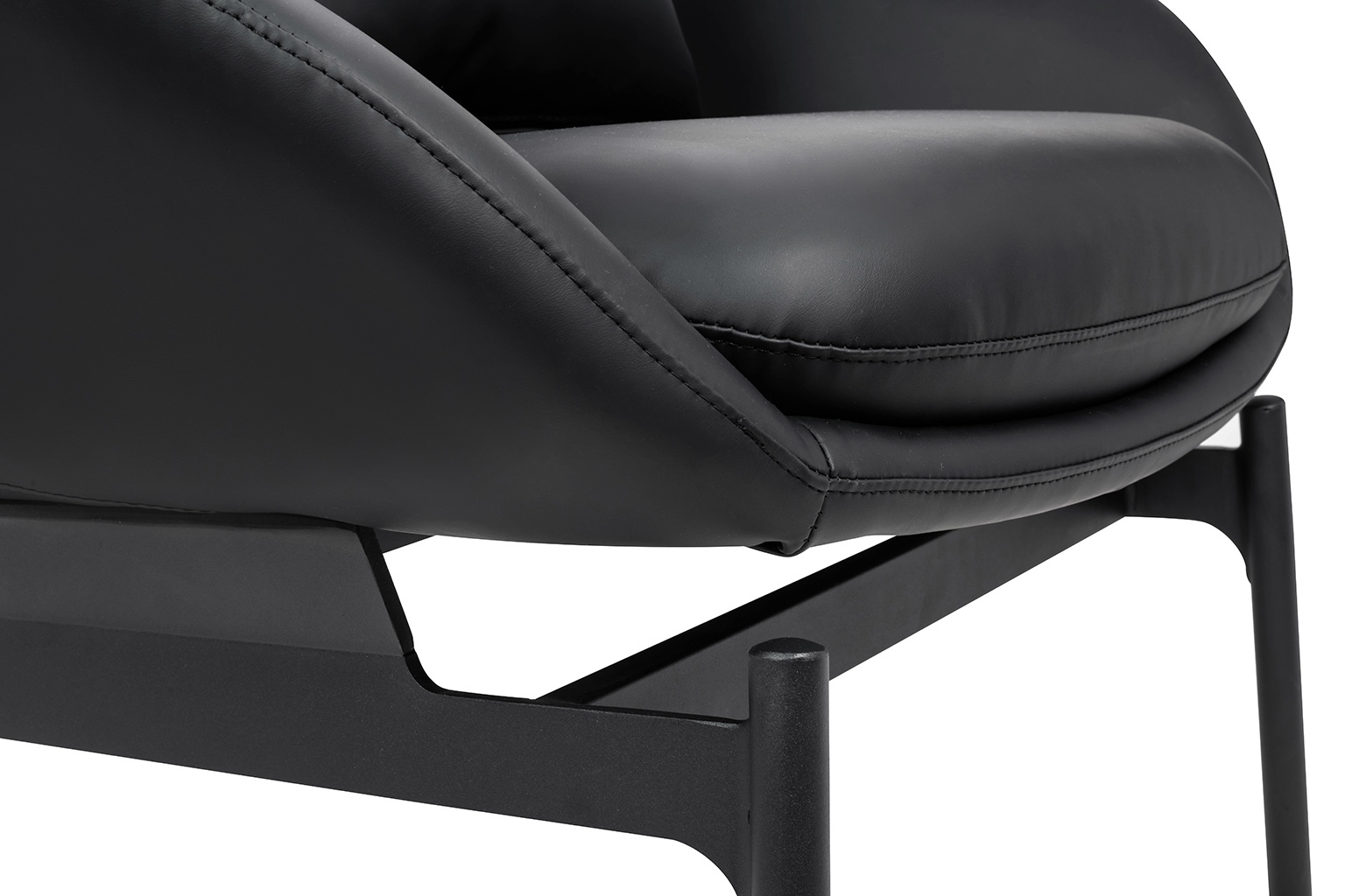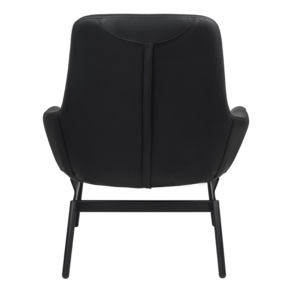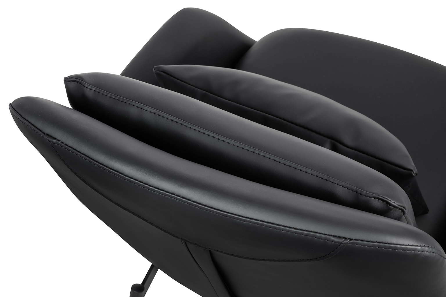 - Fotel LAZY. Siedzisko oraz dekoracyjne poduszki w całości tapicerowane są czarną ekoskórą. Szeroka metalowa podstawa lakierowana na kolor czarny sprawia, że konstrukcja fotela jest niezwykle stabilna, co zapewnia wygodę i komfort. Głębokość siedziska może