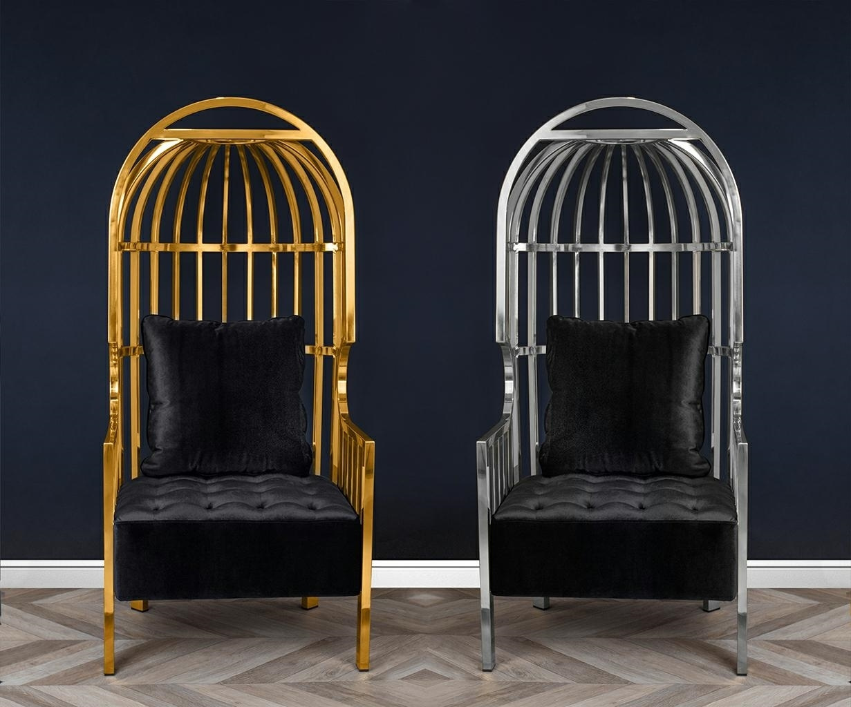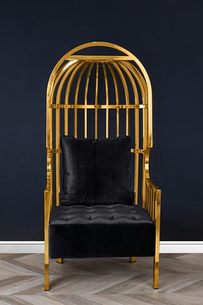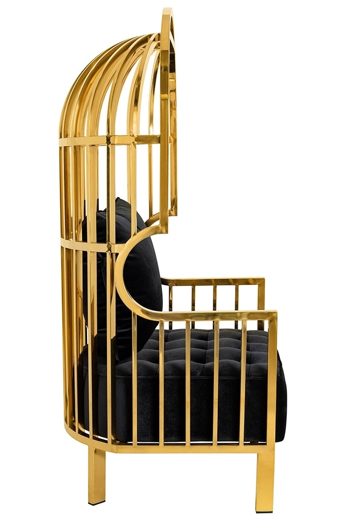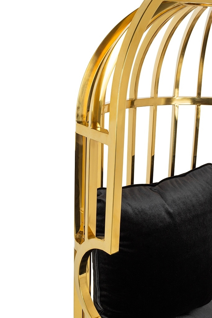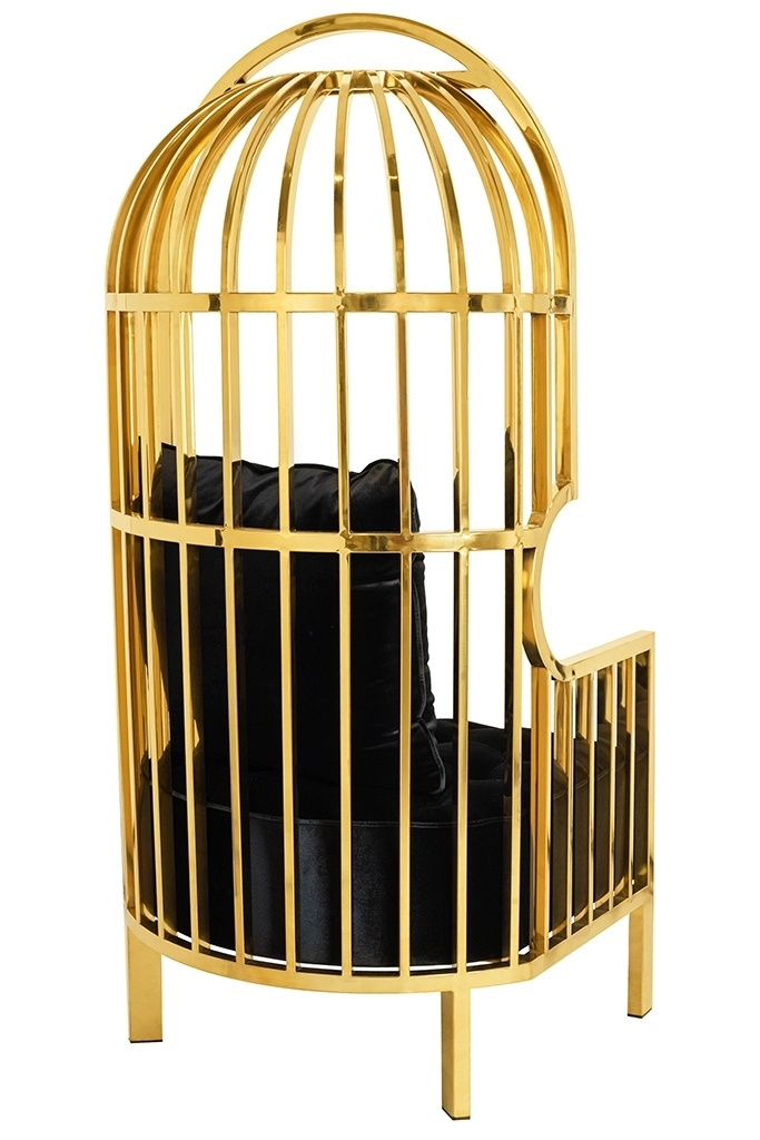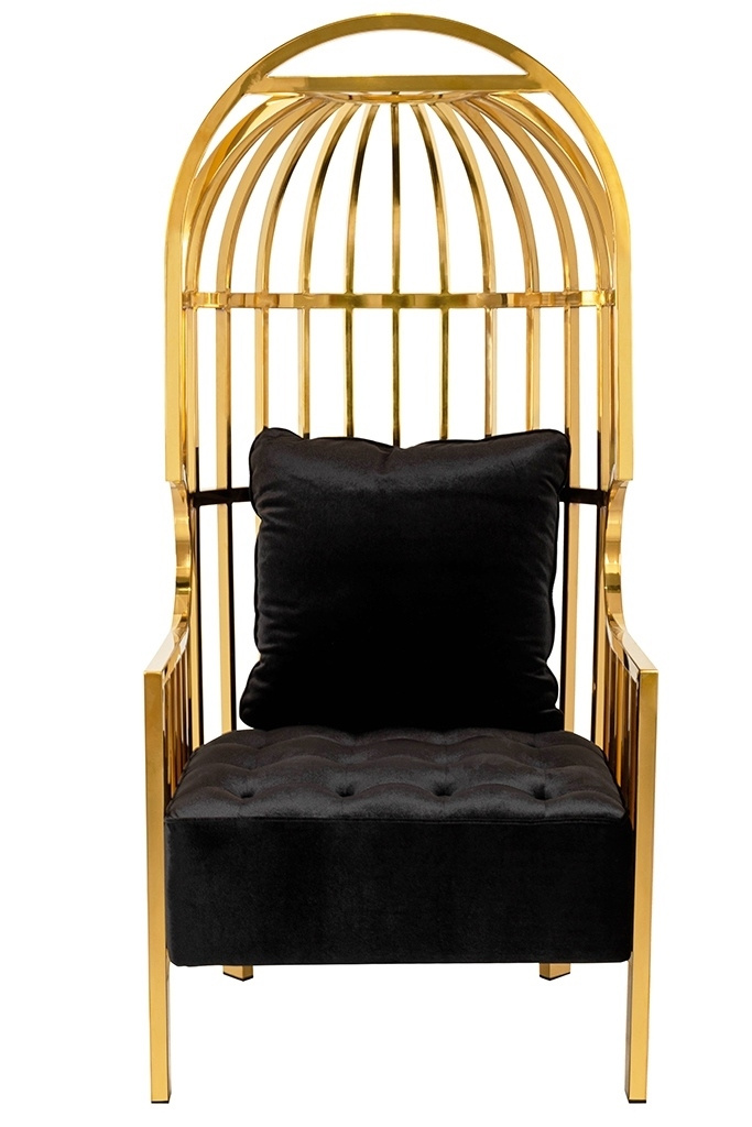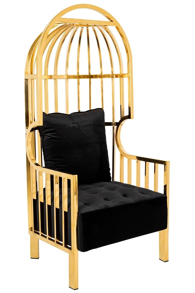 - Fotel LORD wyróżnia się interesującym designem. Solidny korpus zrobiony ze stali nierdzewnej w kolorze złotym, kształtem przypomina formę klatki. Fotel posiada wygodne podłokietniki oraz miękkie welurowe siedzisko. Poduszka zapewnia komfort oparcia i pełn