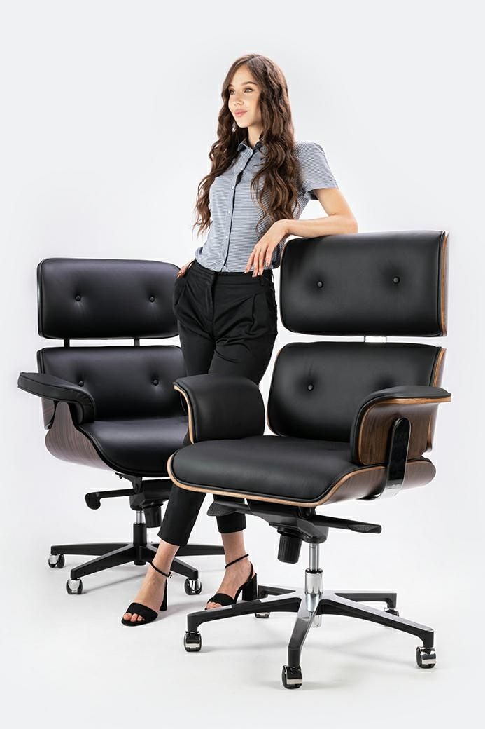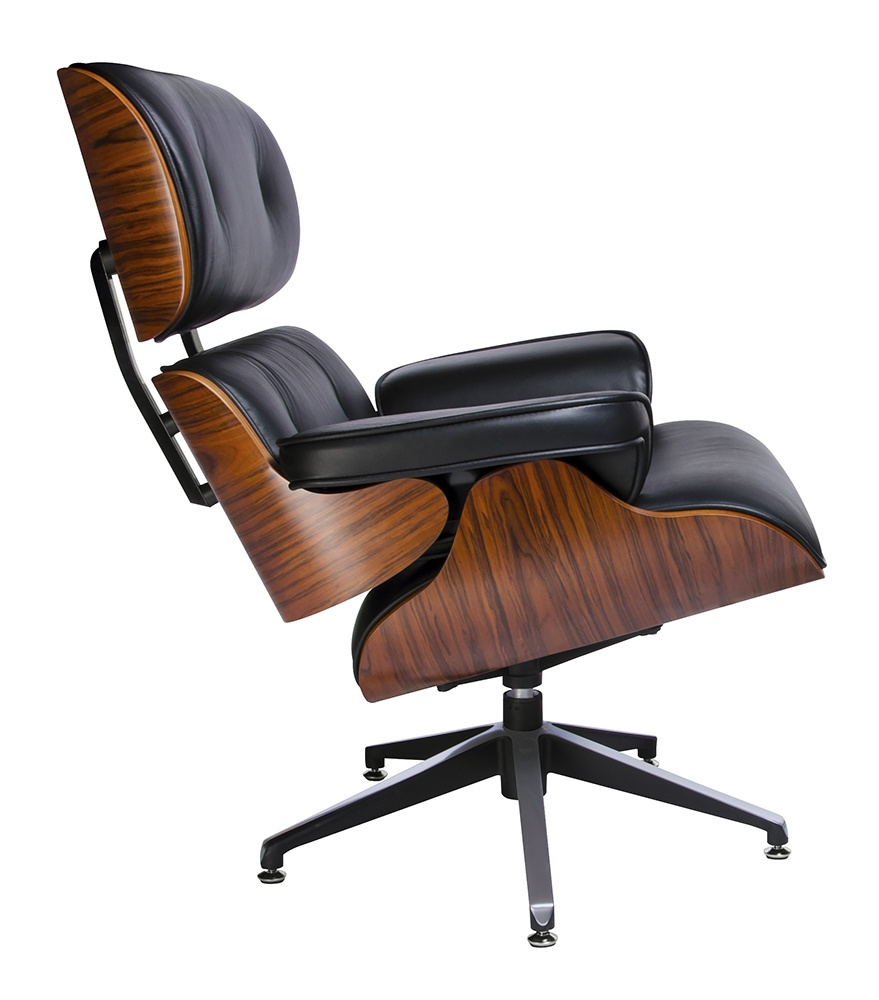 - Fotel LOUNGE czarnym z różanym drewnem. Siedzisko, oparcie oraz podłokietniki tapicerowane są skórą naturalną w kolorze czarnym. Korpus fotela został wykonany z giętego na ciepło drewna w kolorze różanym. Podstawa oraz elementy metalowe wykonane zostały z