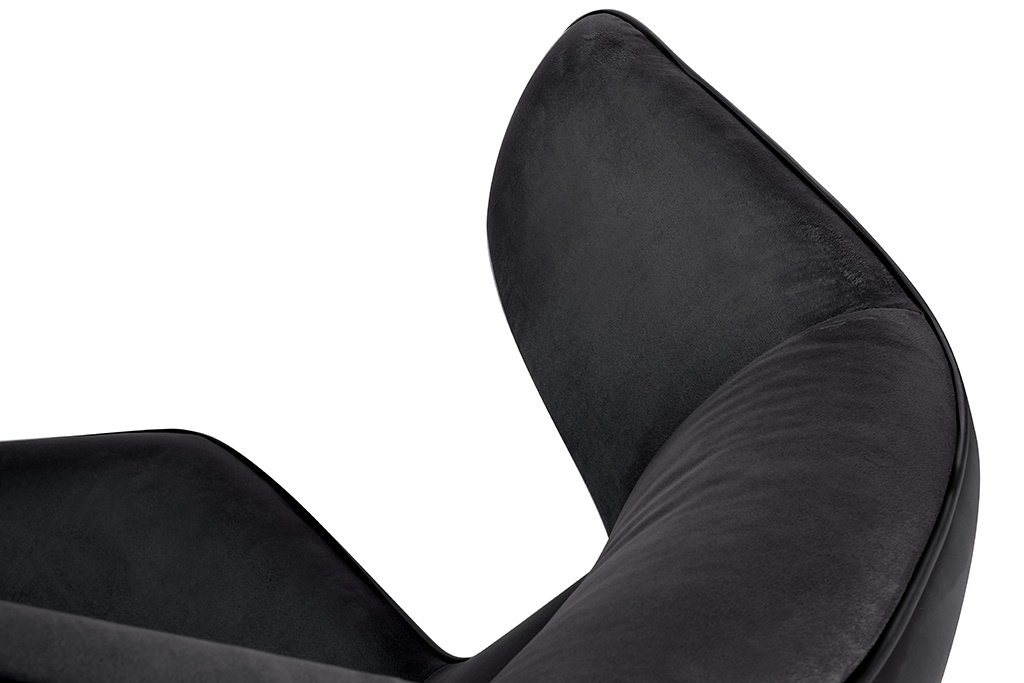 - Fotel obrotowy VITA VELVET czarny PU. Miękkie siedzisko od wewnątrz tapicerowane jest welurową tkaniną w czarnym kolorze. Na zewnątrz całość pokryta jest czarną ekoskórą z dekoracyjnymi suwakami. Obrotowa podstawa fotela została wykonana ze stali w kolorz