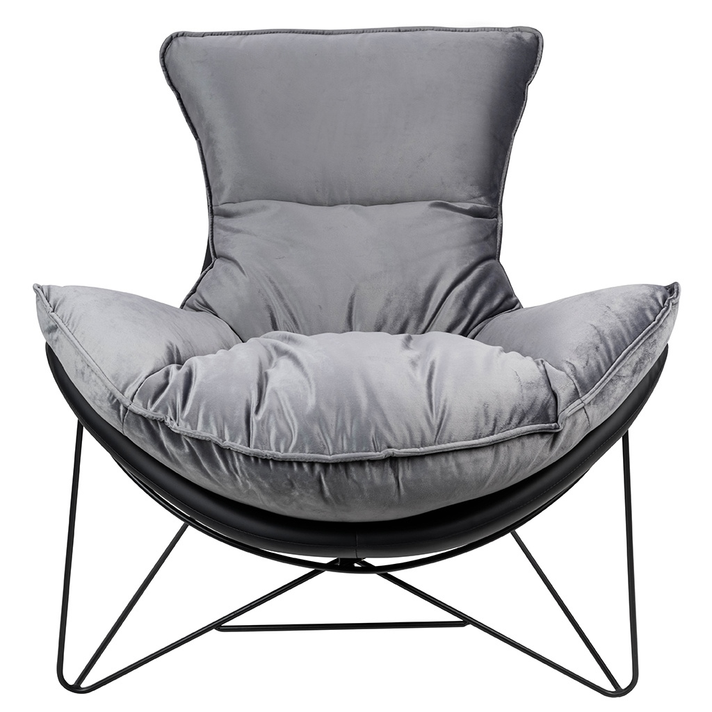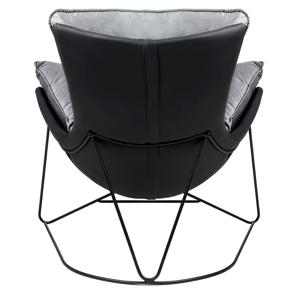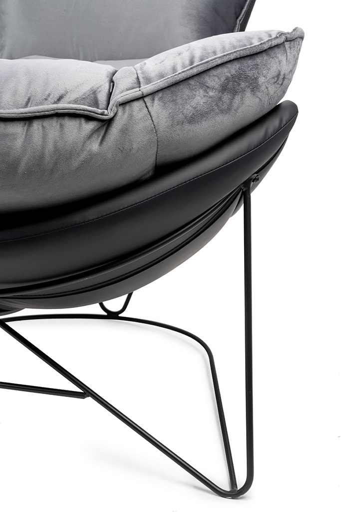 - Fotel OTILIA. Korpus tapicerowany ekoskórą w kolorze czarnym. Miękka poducha obszyta aksamitną welurową tkaniną w kolorze ciemnoszarym oprócz przytulnego designu cechuje się również niesamowitą wygodą. Całość osadzona na stabilnej metalowej podstawie laki