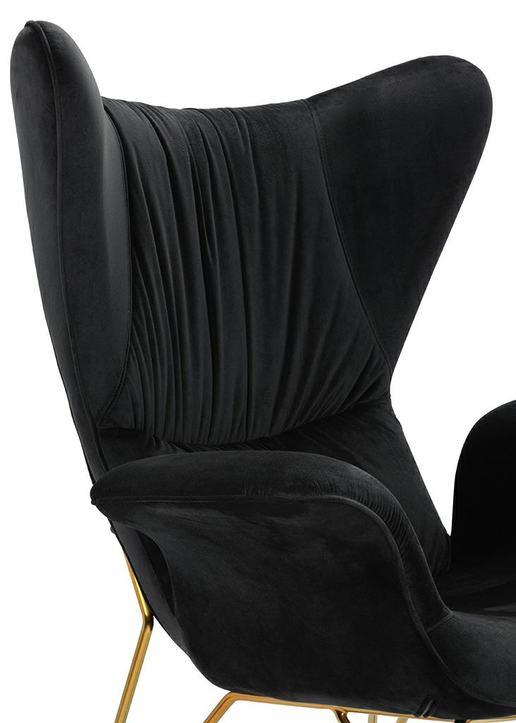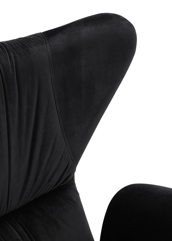 - Fotel SHRIMP VELVET to mebel elegancki i ponadczasowy. Podczas procesu produkcji, zadbano o każdy detal. Obszyty jest miękkim, ciepłym welurem w kolorze czarnym. Bardzo dokładnie wykonane szwy na łączeniach materiału podkreślają solidne wykonanie mebla. O
