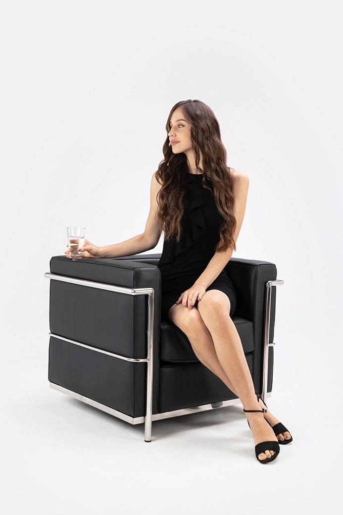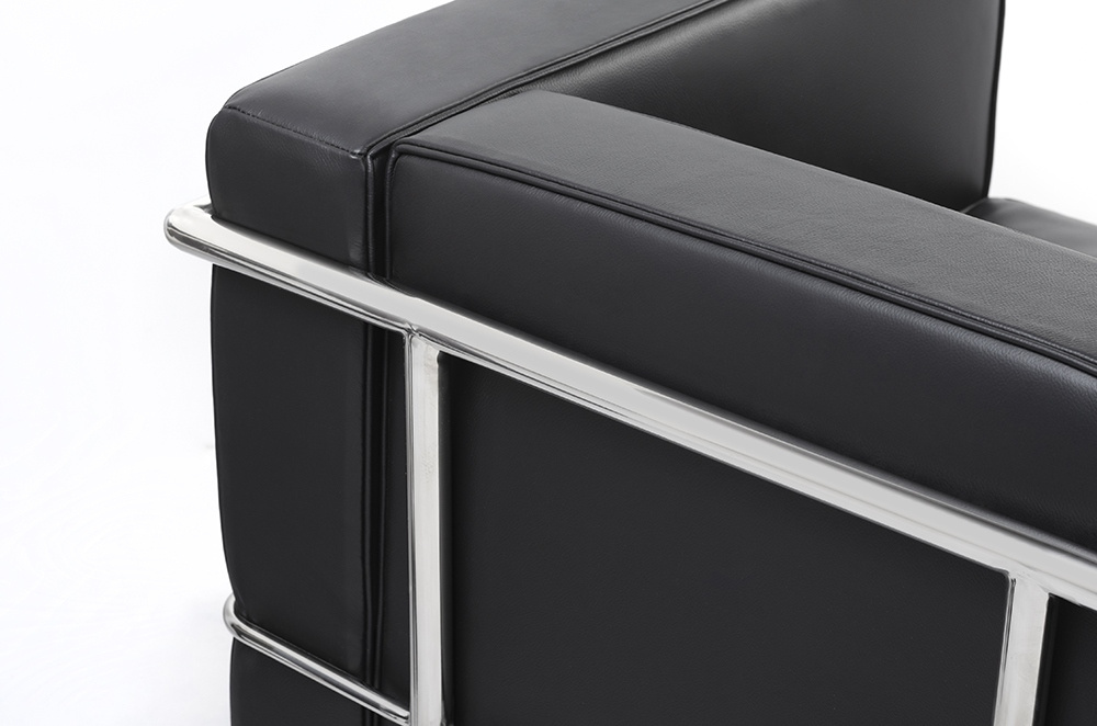 • Fotel SOFT LC2 , elegancja w klasycznym wydaniu. Naturalna włoska skóra w czarnym kolorze, połączona z chromowanymi elemenetami. Dzięki szerokości 80 cm na fotelu można się wygodnie rozsiąść i wypocząć. Siedzisko jest na wysokości 42 cm, ułatwia to siadan