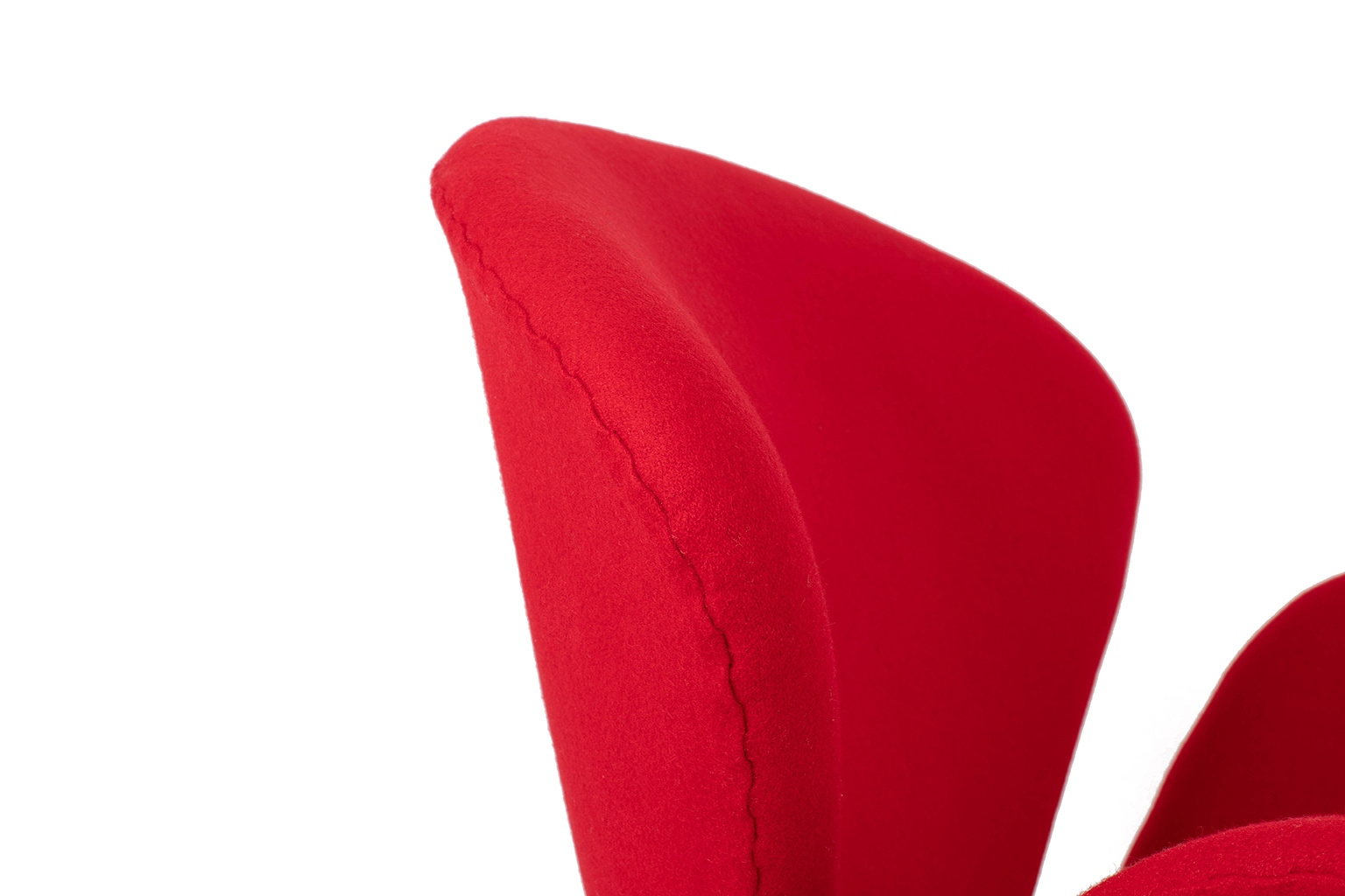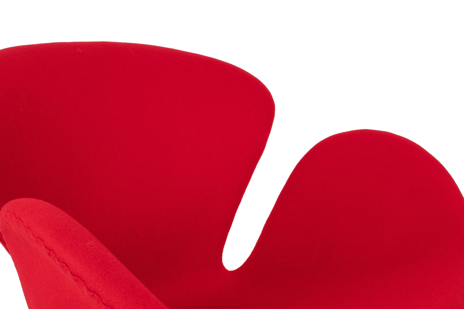 - Fotel SWAN PREMIUM regulowany czerwony. Oparcie oraz siedzisko tapicerowane są wełną kaszmirową (60% wełna naturalna, 40% poliester). Korpus fotela wykonany jest z włókna szklanego, a solidna podstawa ze stali chromowanej. Wbudowany mechanizm obrotowy 360