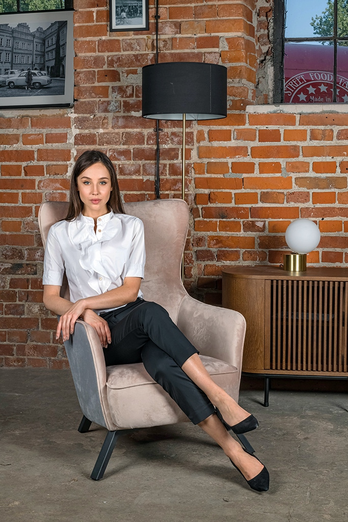 - Fotel VIGO. Siedzisko w całości tapicerowane jest jasnym, aksamitnym welurem w dwóch odcieniach. Metalowa podstawa lakierowana na kolor czarny matowy stabilnie utrzymuje konstrukcję fotela. Możliwość personalizacji obicia, wyjątkowy design oraz solidne wy