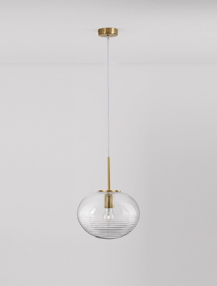 • HAINA od Luces Exclusivas w kolorze mosiądzu i z transparentnym kloszem.