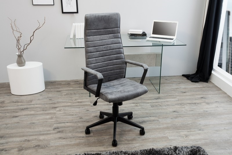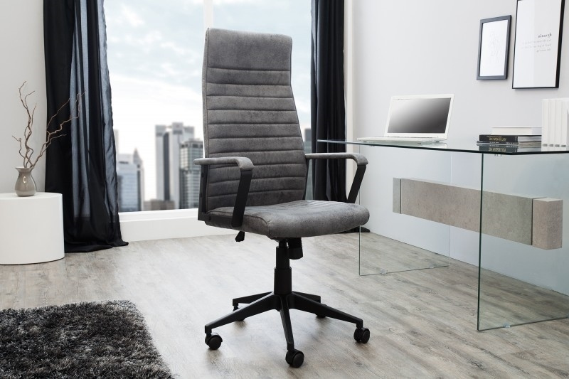INVICTA fotel biurowy LAZIO HIGH szary. Lazio High, to fotel o bardzo komfortowym siedzisku w kolorze szary vintage z podłokietnikami. Posiada wytrzymałą podstawę oraz wysokie oparcie wykonana z metalu. Dzięki swojemu eleganckiemu wyglądowi nada szyku niejednemu wnętrzu. Można się nim swobodnie poruszać dzięki kółkom zamontowanym na podstawie ramy. Wymiary: wys. 115 - 125 cm / szer. 70 cm / gł. 60 cm.