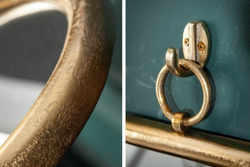 - Lustro Portret to ponadczasowe lustro w błyszczącej ramie wykonane z wysokiej jakości stopu aluminium w kolorze złotym, który nawiązuje do stylu retro. Jego wygląd na pewno zapadnie w gust osobom, którzy uwielbiają przeglądać się w lustrze. Jest to idealn