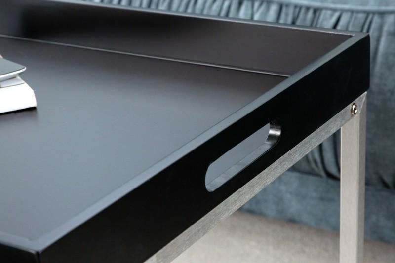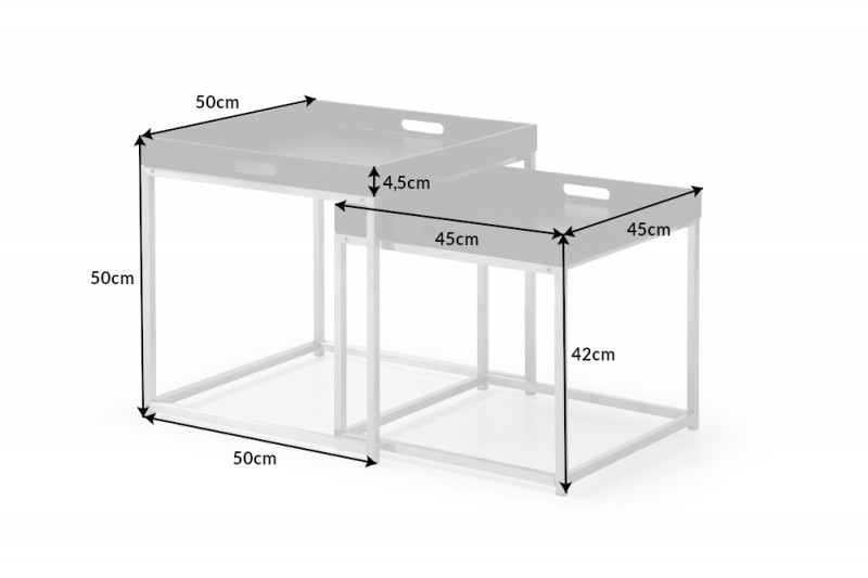 - Jego solidna podstawa, to chromowana rama, która zabezpiecza stabilizację i komfort używania. Blat można demontować i używać jako oddzielnej tacy. Stoliki idealnie sprawdzą się w salonie podczas spotkań ze znajomymi. Wymiary: 1) wys. 50 cm / szer. 50 cm /
