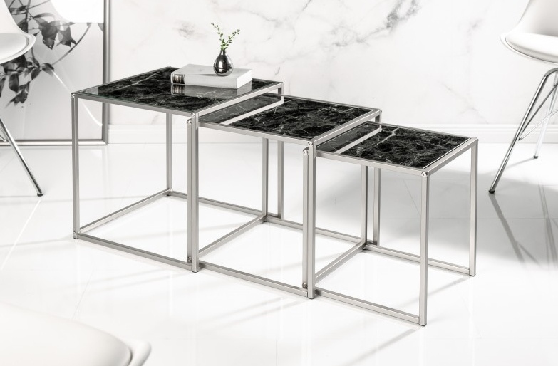 INVICTA zestaw stolików ELEMENTS 3 czarne szkło - imitacja marmuru