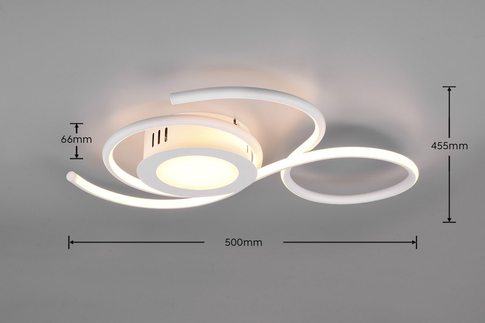 • JIVE, Kolor biały, pilot w zestawie, wbudowany ściemniacz, płynna zmiana barwy światła, funkcja lampki nocnej, Nie współpracuje z zewnętrznym ściemniaczem.