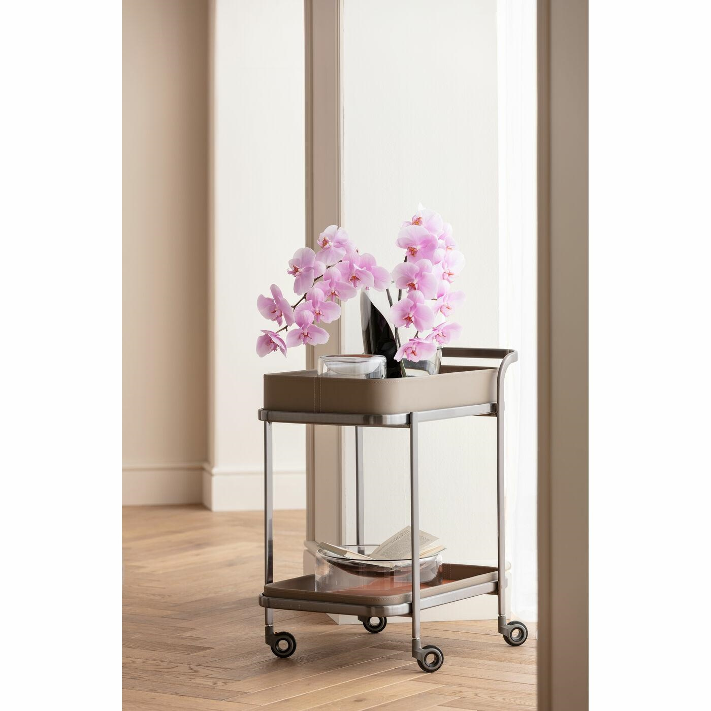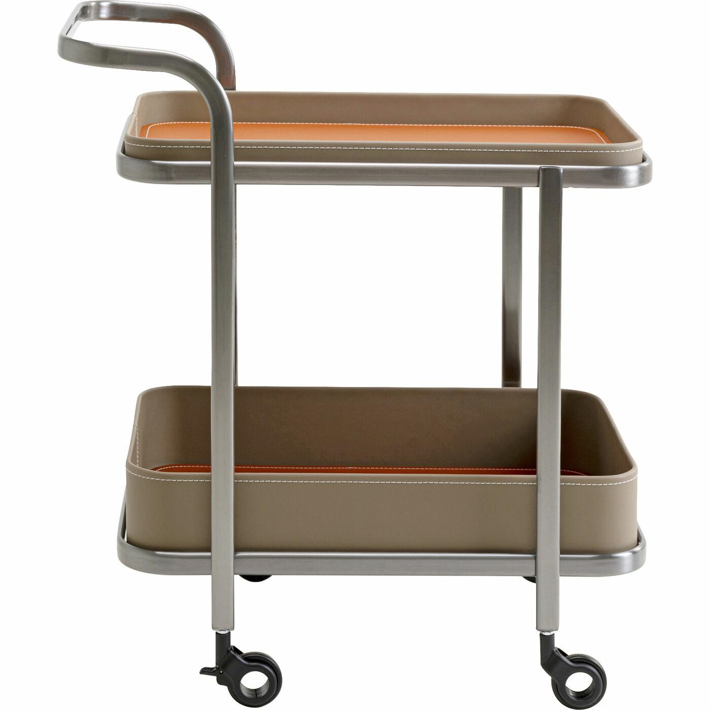 - KARE barek TANGO. Elegancki i funkcjonalny wózek na kółkach, który doskonale odnajdzie się w nowoczesnych wnętrzach. Konstrukcja wykonana jest z solidnej, szczotkowanej stali nierdzewnej w kolorze srebrnym, co gwarantuje trwałość i stabilność. Półki wykoń