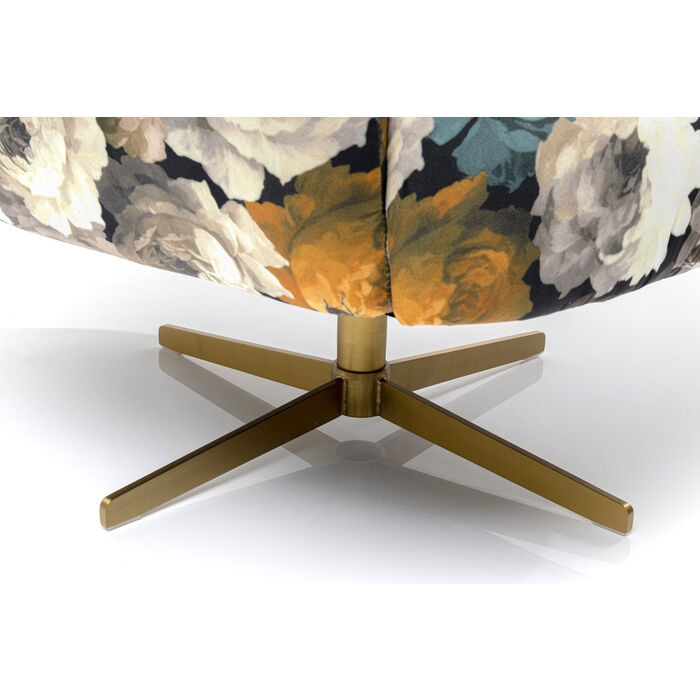 - KARE fotel obrotowy PEONY FLOWER. Piękny, malowniczy fotel z funkcją obrotową 360 stopni. Oparcie oraz wygodne siedzisko wykonano z przyciągającej wzrok tkaniny poliestrowej zdobionej kwiatami. Elegancką podstawę wykonano ze stali w złotym kolorze. Peony