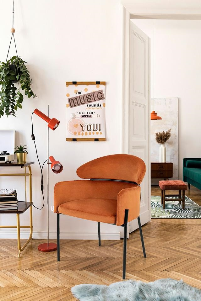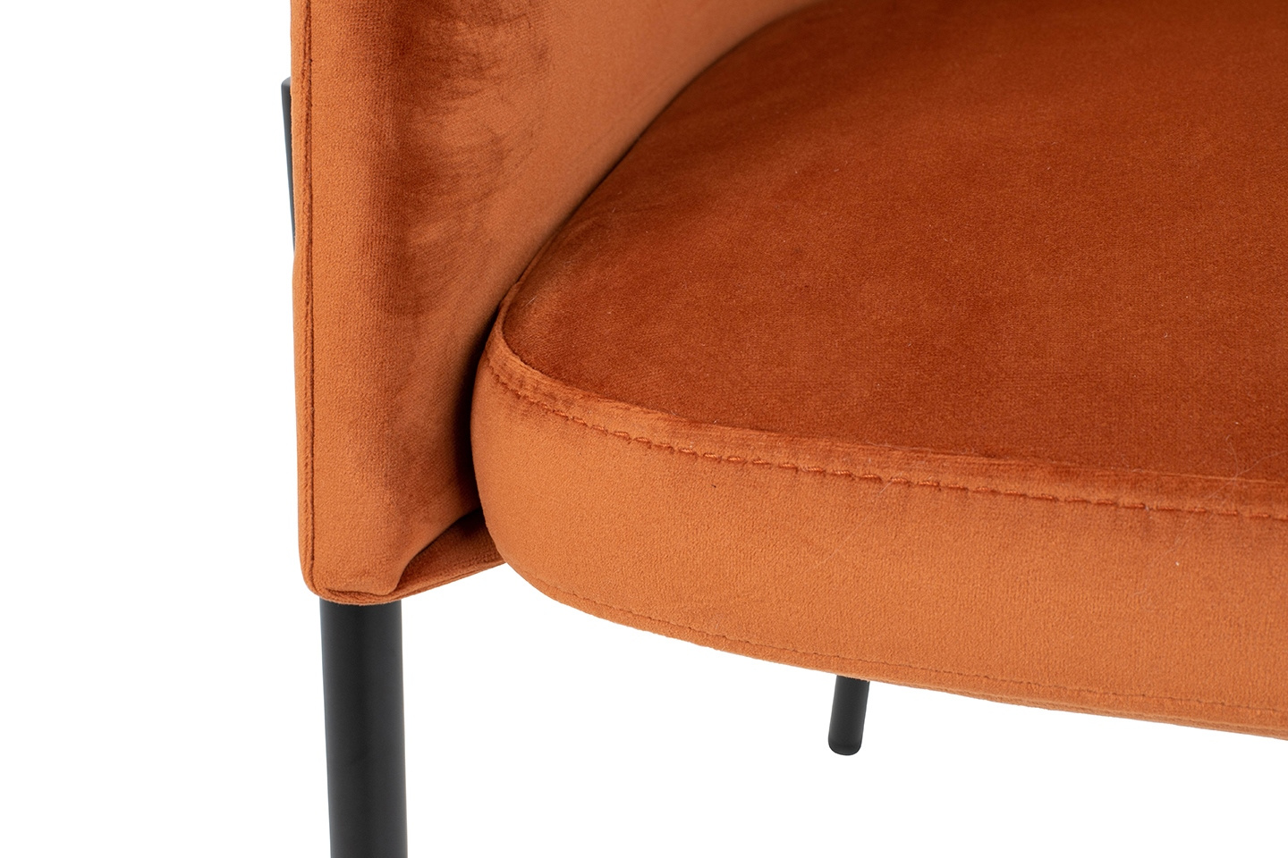 - KARE krzesło ALEXIA Velvet pomarańczowe. Wyróżniające się wyrazistym kolorem oraz formą Alexia to krzesło, które doskonale wpasuje się we współczesne wnętrza. Ciekawy kształt oparcia przechodzący w podłokietniki oraz aksamitne siedzisko zapewniają najwyżs