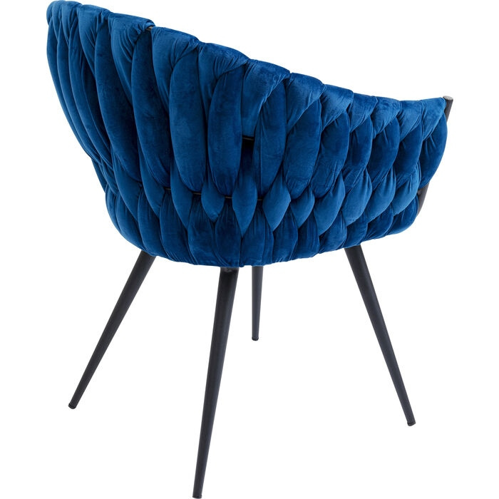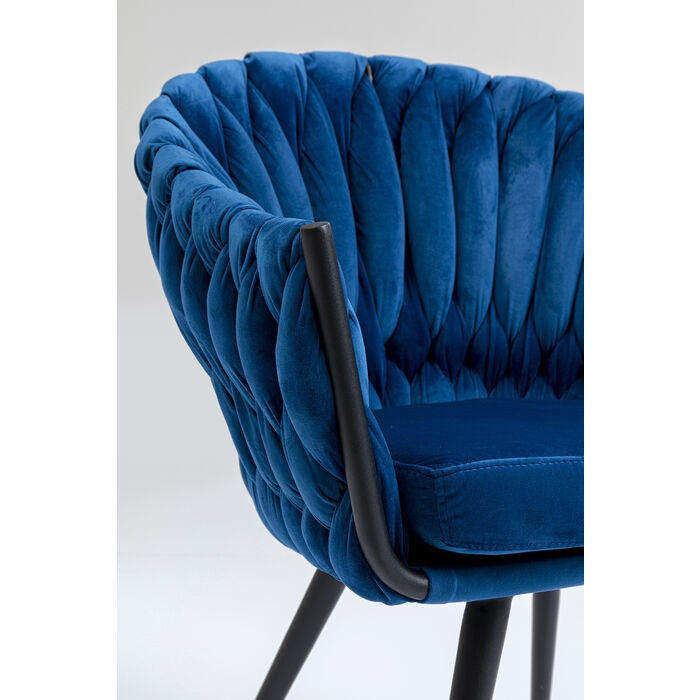 - KARE krzesło KNOT ciemny niebieski. Nowoczesny, elegancki design, który musisz mieć! Kształtne siedzisko o ozdobnym splocie wykonano z aksamitnej tkaniny welurowej w głębokim niebieskim kolorze. Oryginalnego charakteru dodają czarne akcenty. Smukłe nóżki