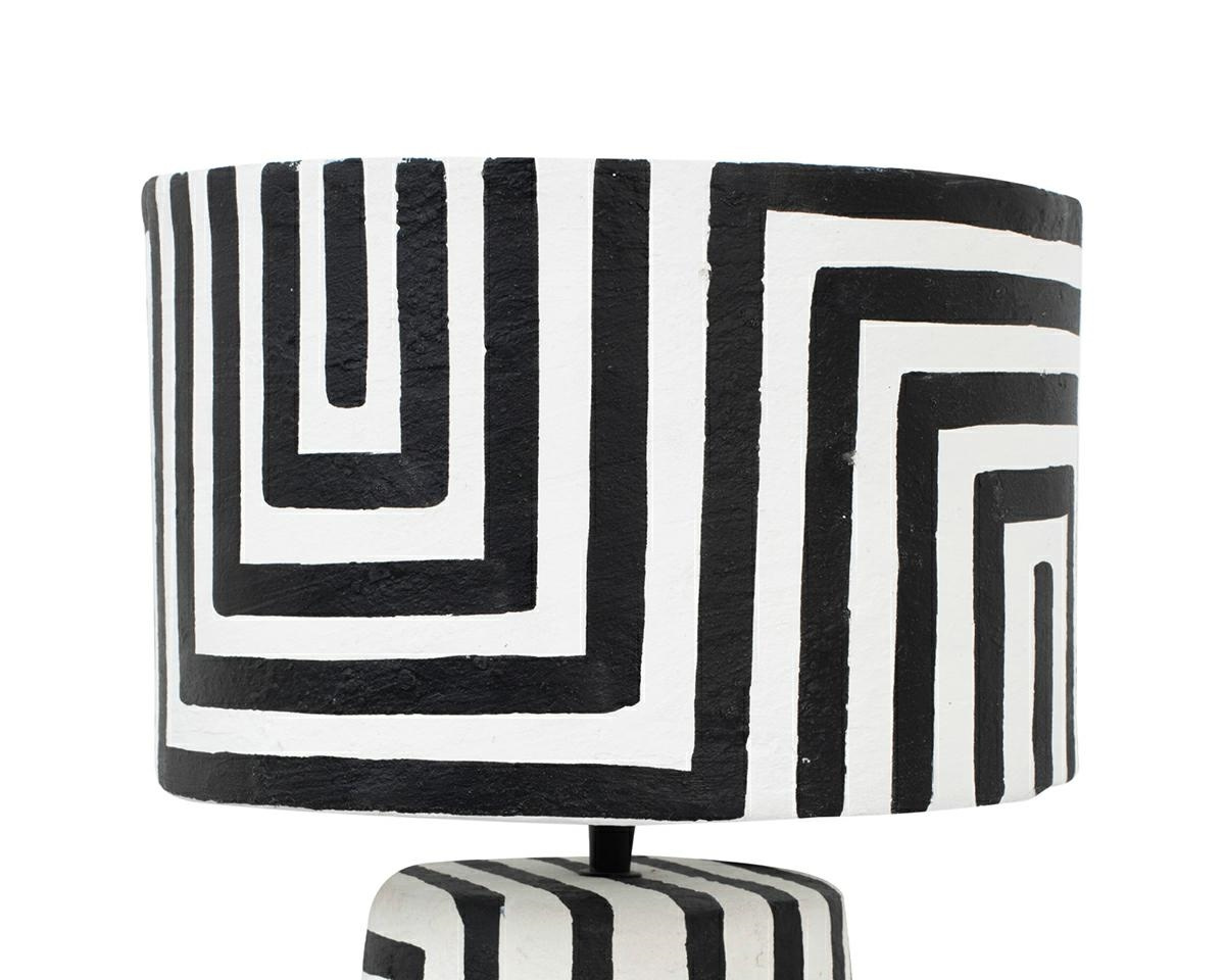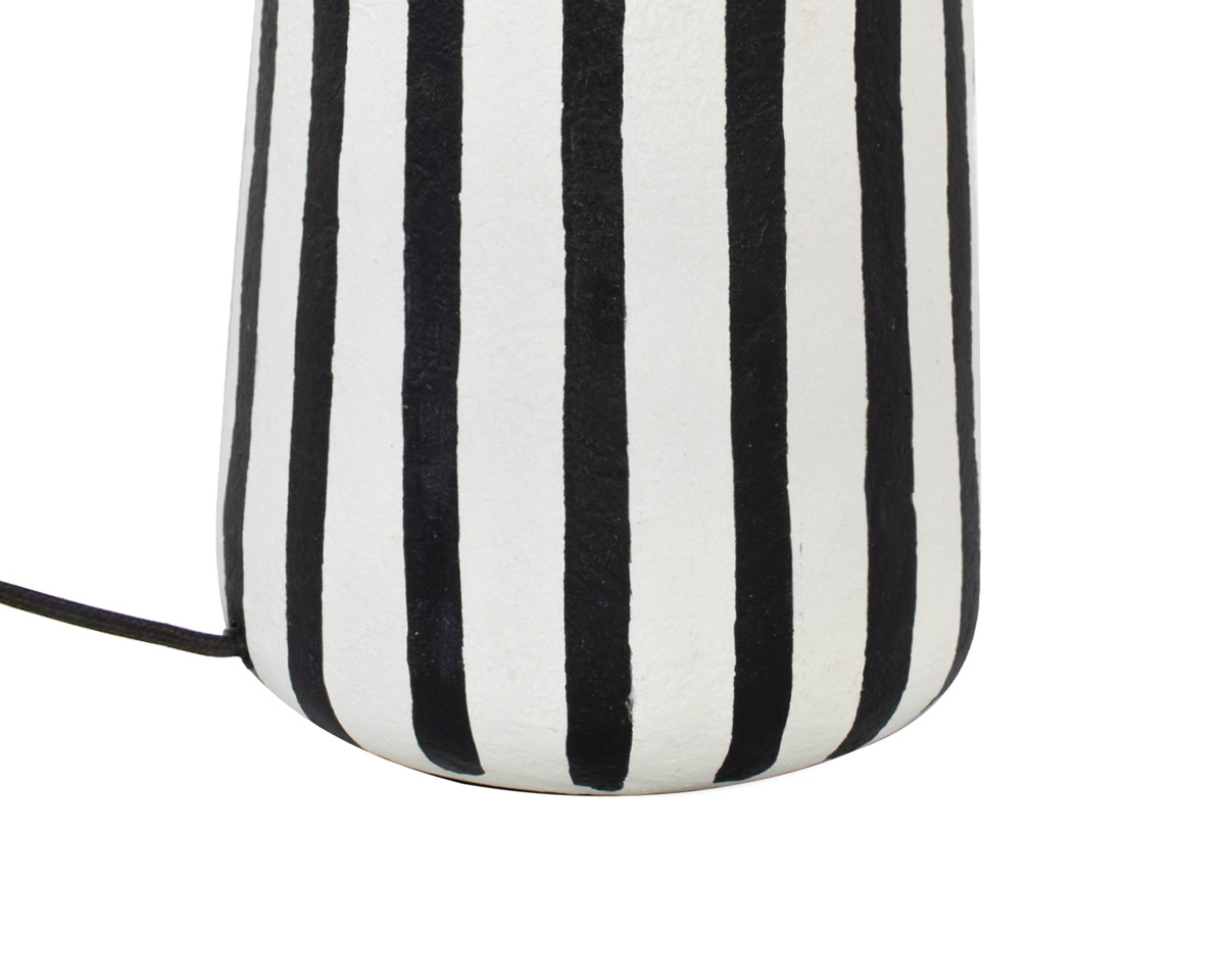 • KARE lampa stołowa STRISCE 44 cm biało-czarna. Niezwykła, oryginalna lampa stołowa Strisce udekoruje nie jedno wnętrze swoją wyjątkową stylistyką. Elegancka bryła w kolorystyce biało-czarnej wykonana została ręcznie z papieru mache, dzięki czemu każdy egz