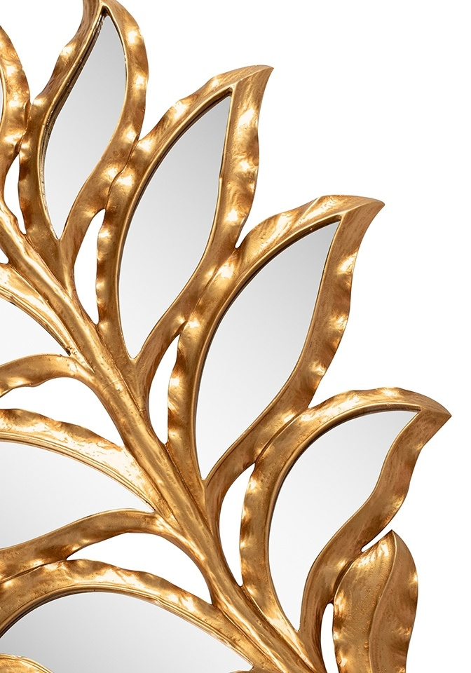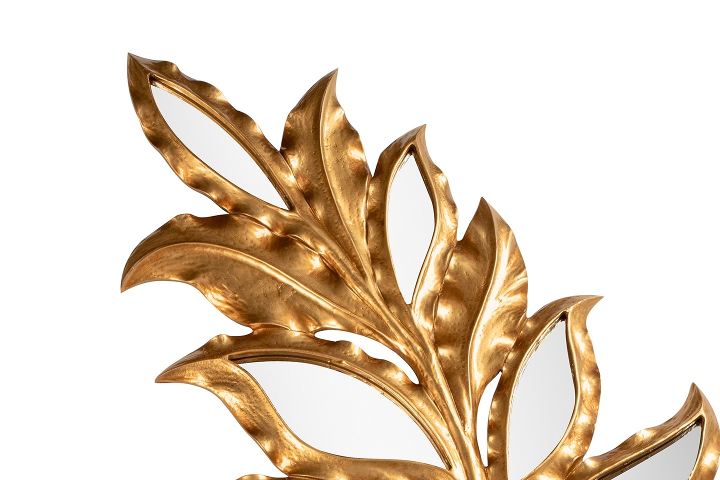 • Lustro ścienne LEAF złote. Designerskie, kreatywne lustro, które zachwyca swoim nietypowym kształtem liścia. Całość wykonano w wyniku połączenia tworzywa sztucznego i lustra i wykończono w pięknym, przyciągającym wzrok złotym kolorze. Leaf to wyjątkowa, e