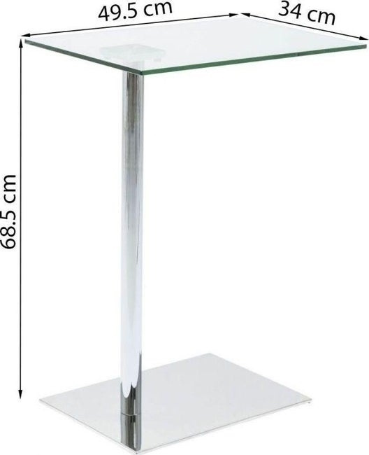 - KARE stolik WEST COAST transparentny. Nowoczesny stolik pomocniczy od marki Kare Design. Szklany blat ze stalową chromowaną podstawą tworzy minimalistyczny i uniwersalny styl. Wymiary: wys. 68,5 cm / szer. 49,5 cm / gł. 34 cm Blat: gr. 8 mm Waga netto: 9.