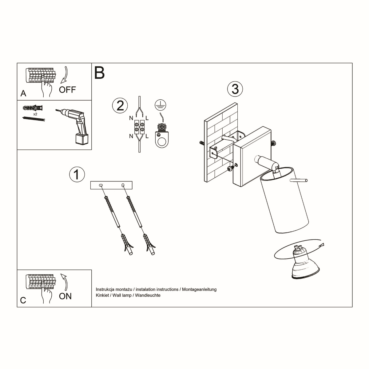 - Źródło światła: GU10, 1x max 10W LED, ~230V, 50Hz, IP20, klasa ochronności IŹródło światła nie jest w komplecie.Wymiary: 8/16/8 cmMateriał: stalKolor: szary