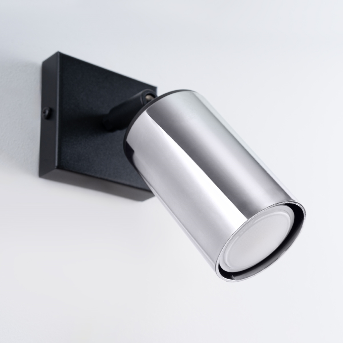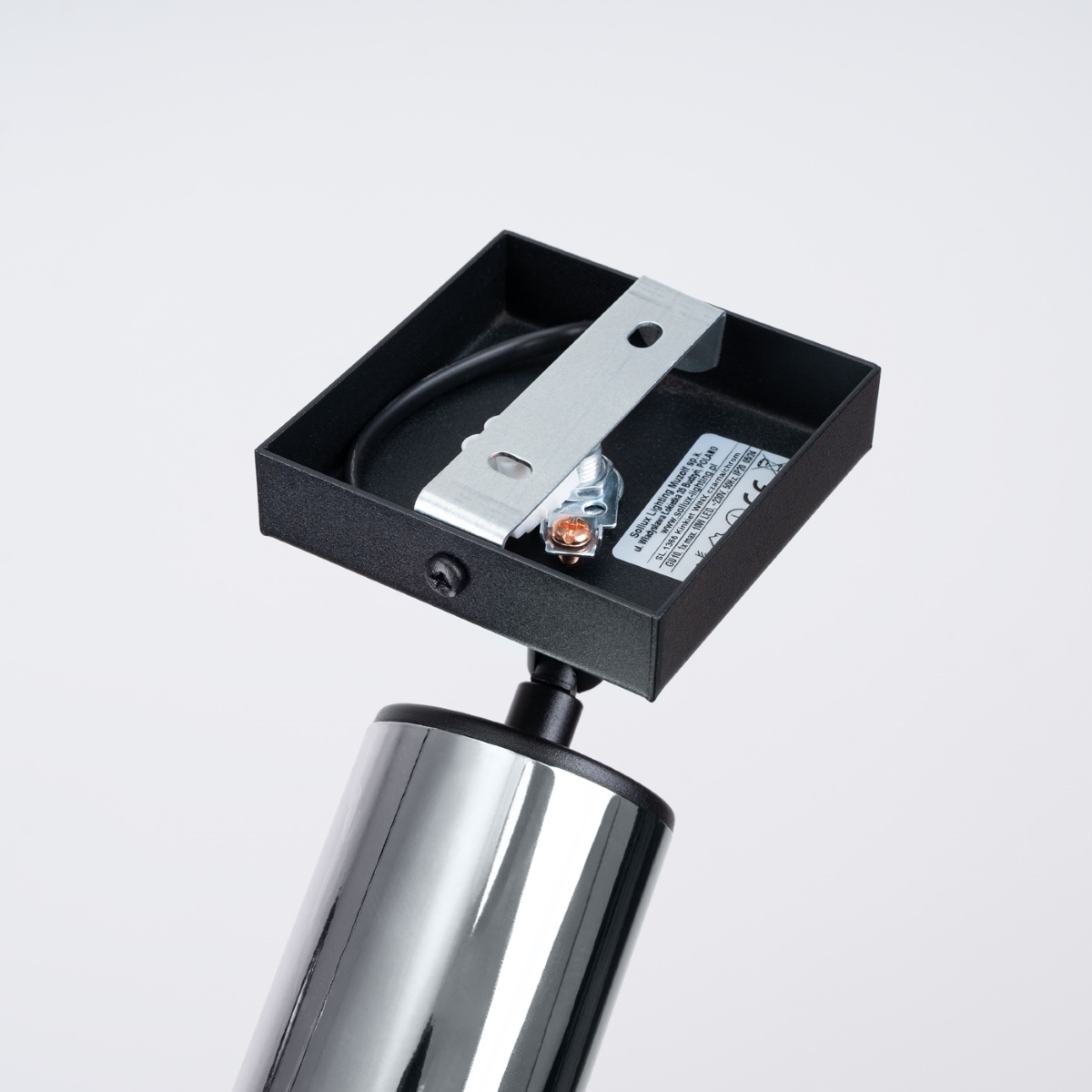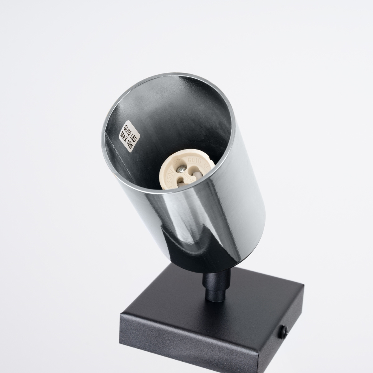 - Źródło światła: GU10, 1x max 10W LED, ~230V, 50Hz, IP20, klasa ochronności IŹródło światła nie jest w komplecie.Wymiary: 8/8/18,5 cmMateriał: stalKolor: czarny, chrom