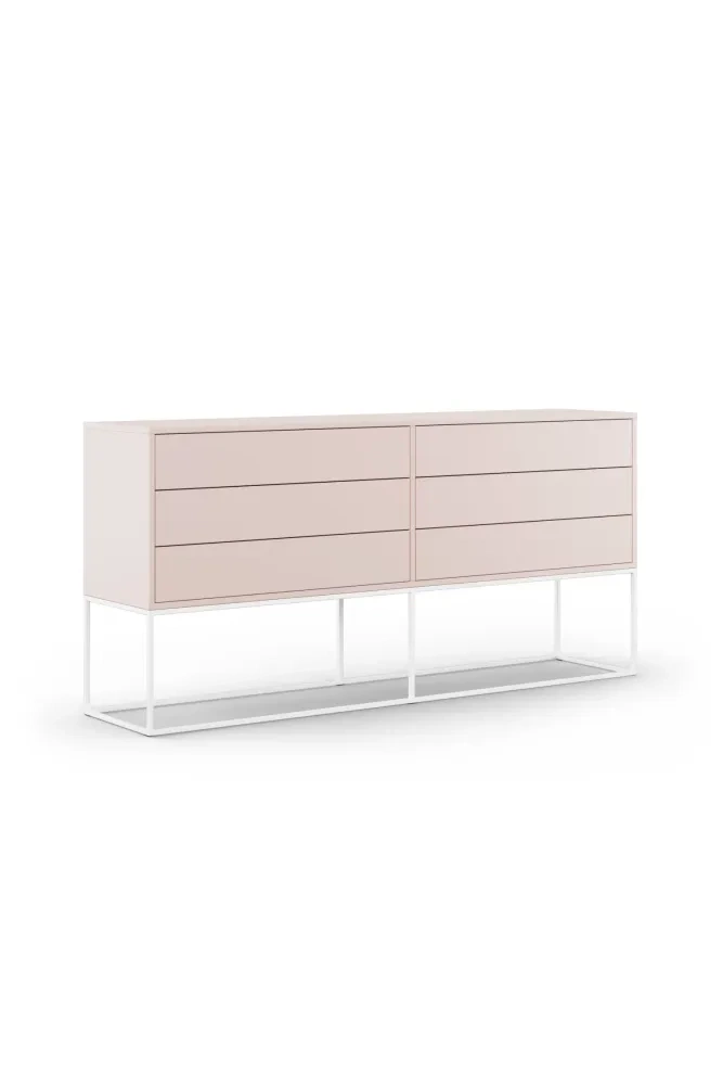 Nóżki wysokiego regału z półkami wykonane zostały z naturalnego drewna: buku, dębu, dębu bielonego lub w wybarwieniu orzecha. Druciki spinające drewniane nóżki regału nie tylko stanowią element konstrukcyjny, ale także zdobią mebel, dodając mu wyjątkowego charakteru. Jak wszystkie meble z oferty, jest dostępny w szerokiej palecie materiałów i kolorów.