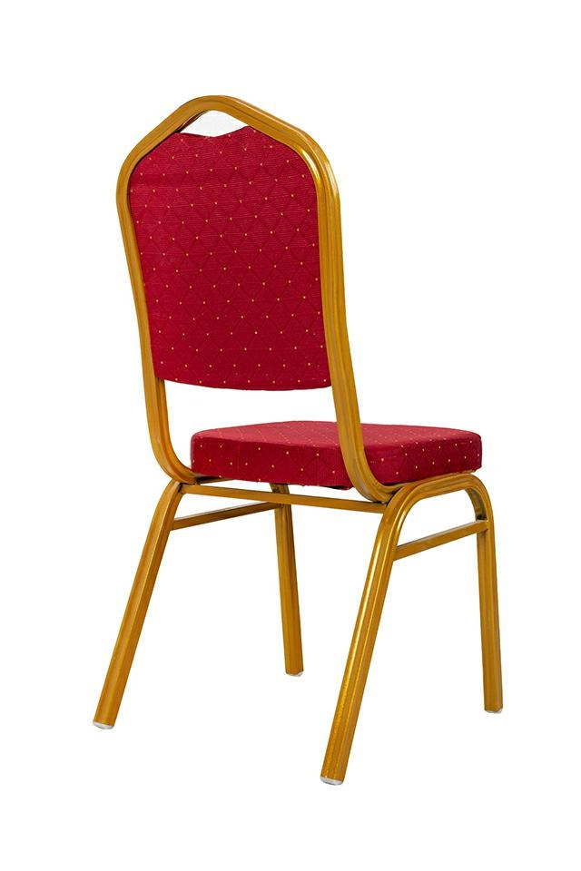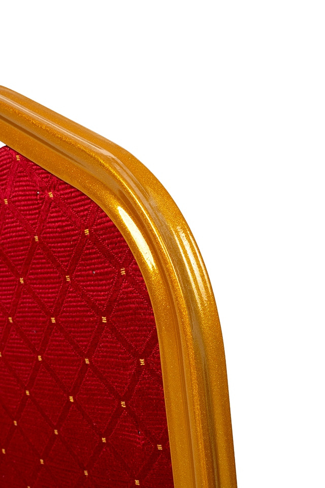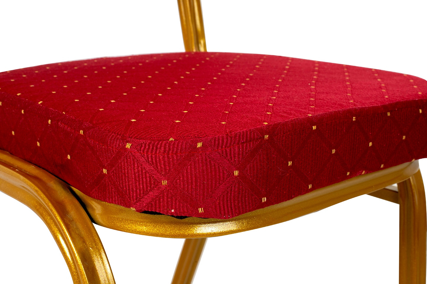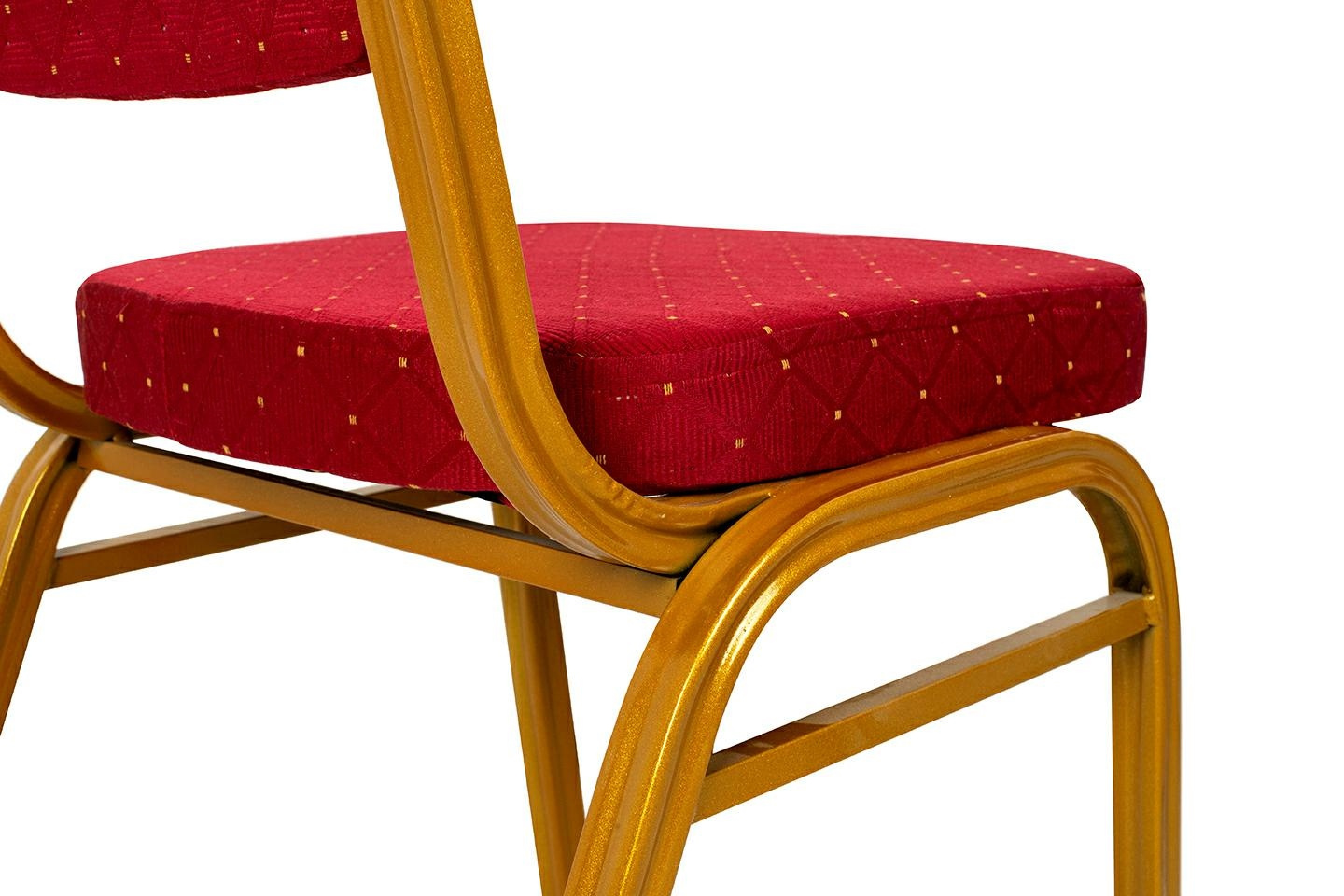 - Krzesło bankietowe HEROS czerwone / złote. Ponadczasowy, klasyczny styl sprawia, że krzesło Heros będzie doskonałą ozdobą każdej uroczystości. Solidna konstrukcja ze stali malowanej proszkowo i szykownie zdobione obicie z tkaniny tapicerskiej o zwiększone