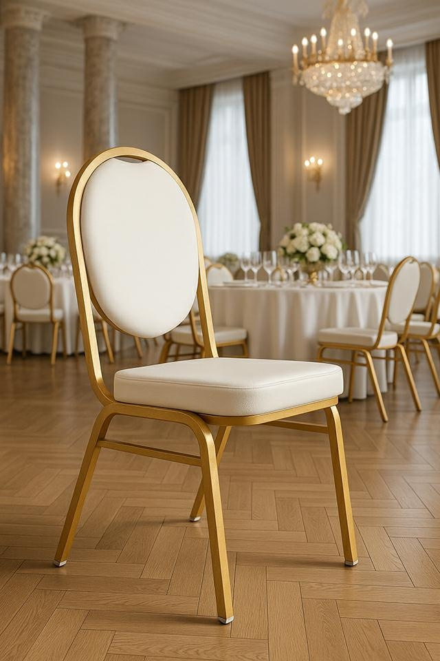 - Krzesło bankietowe / konferencyjne HESTIA Eleganckie krzesło stworzone z myślą o eleganckich wnętrzach bankietowych i konferencyjnych. Tapicerowane białą ekoskórą prezentuje się nowocześnie i stylowo, jednocześnie zapewniając wygodę nawet podczas długich