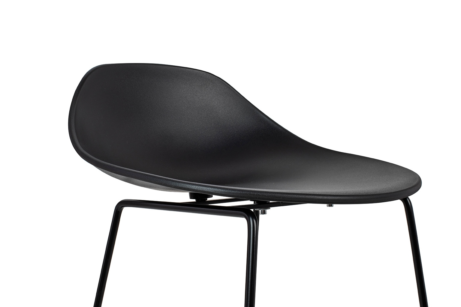 - Krzesło barowe BENNY 66 czarne. Kwintesencja stylu w lekkiej formie. Dzięki prostocie wykonania jest niezwykle elegancki. Siedzisko zrobiono z wysokiej jakości polipropylenu w kolorze czarnym. Solidną podstawę ze stali malowanej proszkowo na czarno zabezp