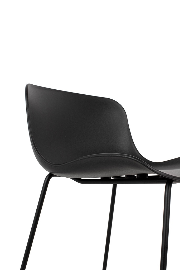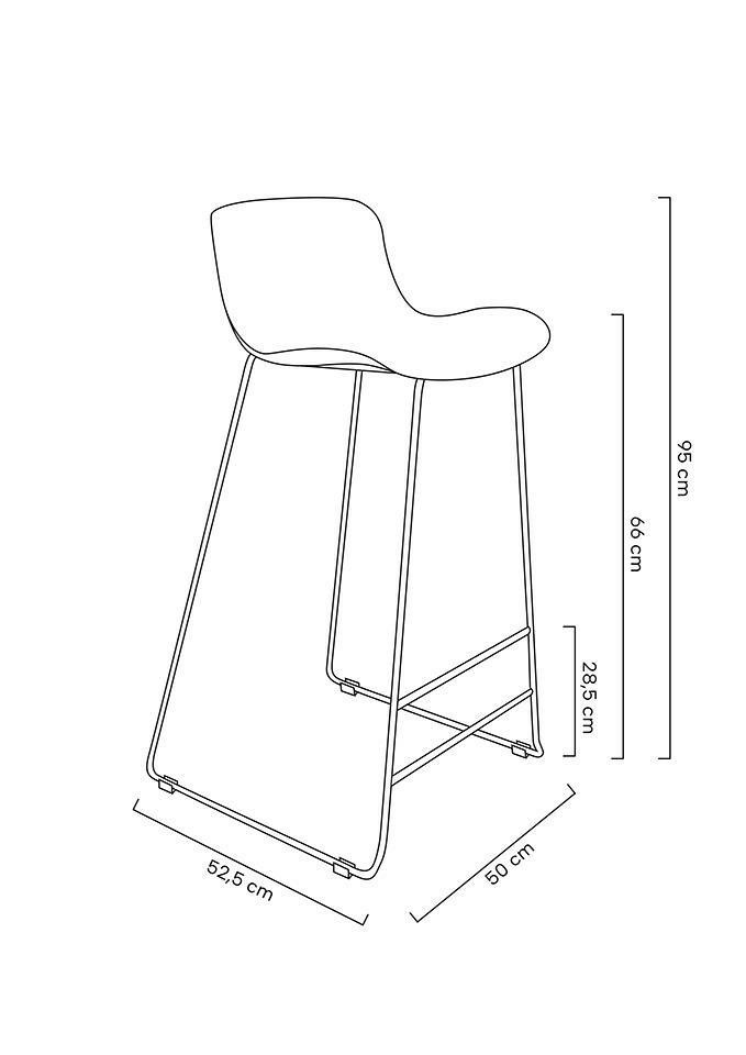 Krzesło barowe COMA 66 czarne. W swej prostocie wykonania jest niezwykle elegancki. Siedzisko wykonano z polipropylenu w kolorze czarnym. Podstawę ze stali malowanej proszkowo na czarno zabezpieczono stopkami. Komfortu dodaje praktyczny podnóżek umiejscowiony na odpowiedniej wysokości. Wymiary: wys. 95 cm / szer. 50 cm / gł. 52,5 cm Wysokość do krawędzi siedziska: 66 cm Siedzisko: szer. 43,5 cm / gł. 36 cm Oparcie: wys. 22 cm / szer. 39 cm Rozstaw nóg: szer. 50 cm / gł. 50 cm / wys. 76 cm Podnóżek: szer. 37 cm Wysokość do niższego podnóżka: 16 cm Wysokość do wyższego podnóżka: 28,5 cm Wymiary opakowania: 56 cm / 53 cm / 89 cm.