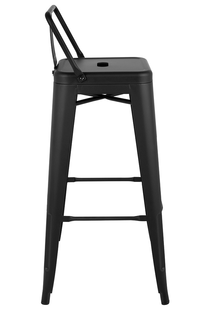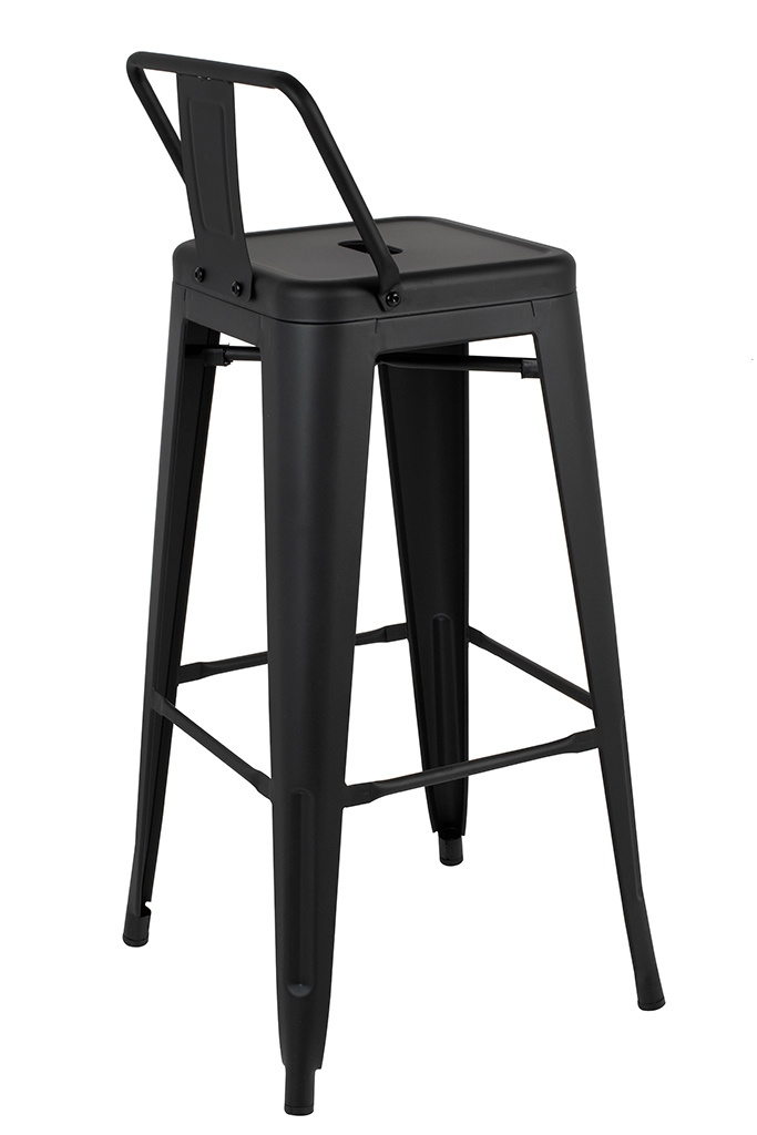 - Krzesło barowe TOWER BACK czarne. Ponadczasowy, uniwersalny hoker z oparciem uzupełni zarówno klasyczne, jak i loftowe oraz industrialne wnętrza. Wykonany w całości z lakierowanego metalu w czarnym, satynowym kolorze jest niezwykle stylowy i praktyczny. O