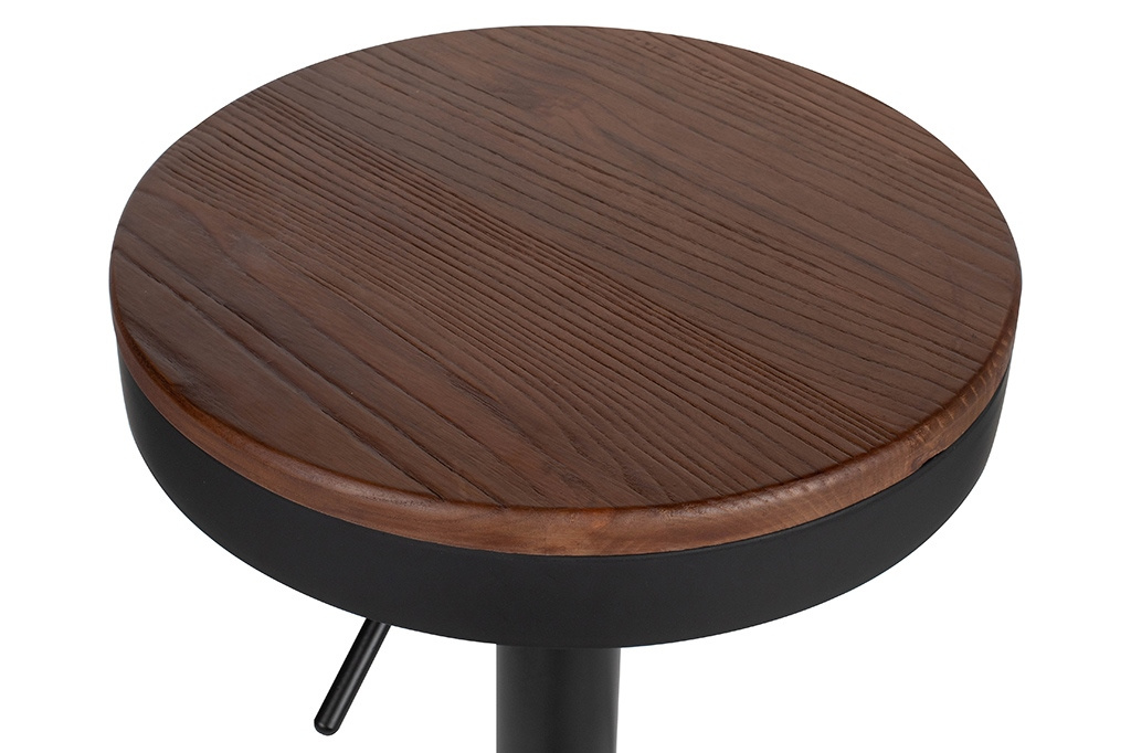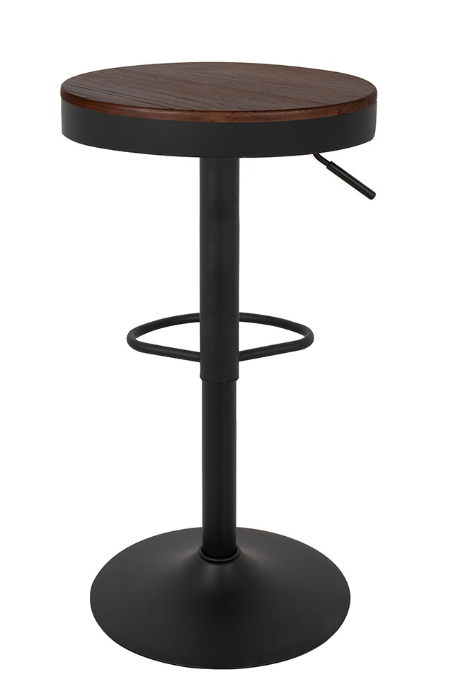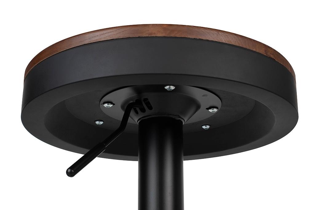 - Krzesło barowe VOLT regulowane czarne. Minimalistyczny, obrotowy hoker z drewnianym akcentem drewna wiązowego, które cechuje się bogatym i różnorodnym usłojeniem, barwą oraz odpornością na działanie wilgoci. Podnóżek oraz możliwość regulacji wysokości spr