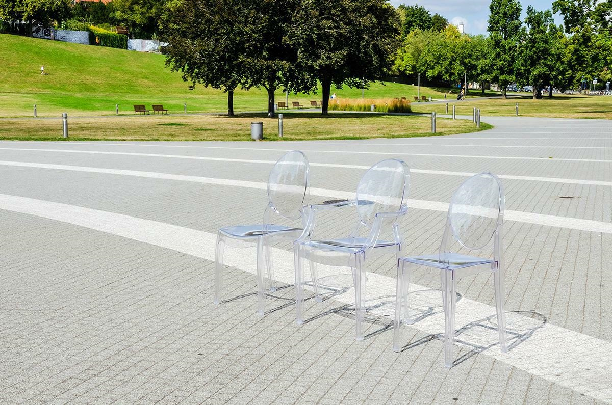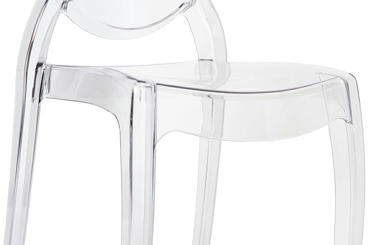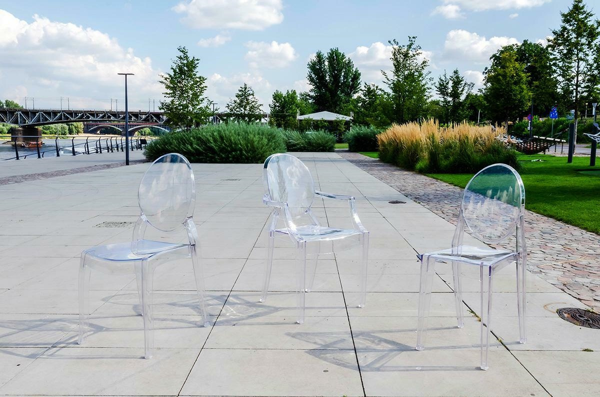 - Krzesło Elizabeth w całości zostało wykonane z wysokiej jakości transparentnego poliwęglanu. Poliwęglan jest wysoce odpornym na zarysowania oraz promienie UV tworzywem sztucznym. Dzięki czemu, krzesło można użytkować wewnątrz jak i na zewnątrz budynku. W