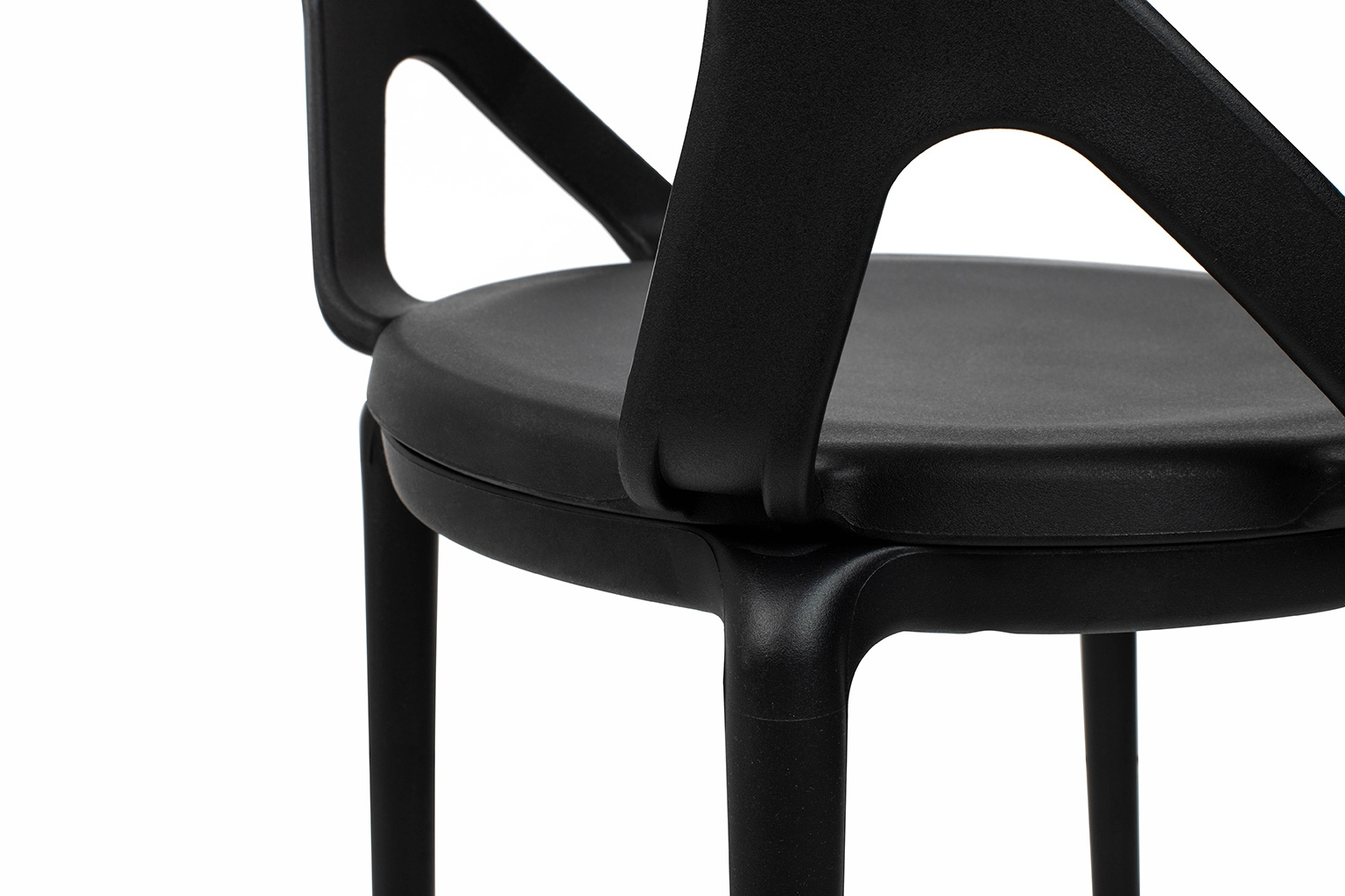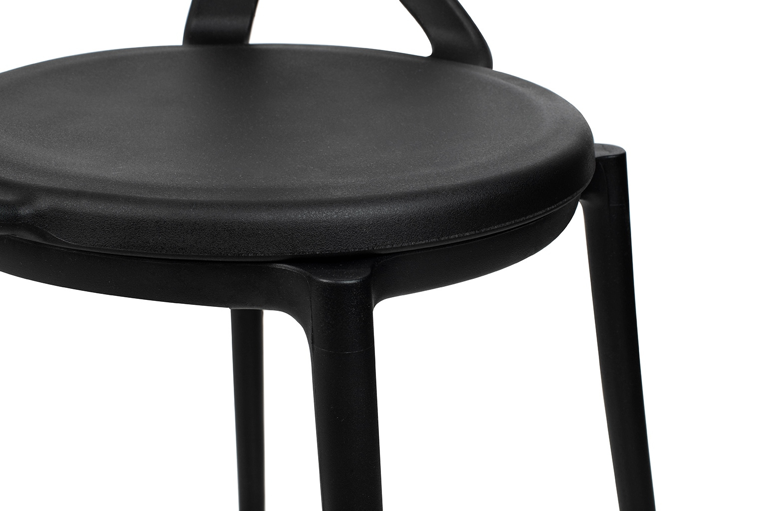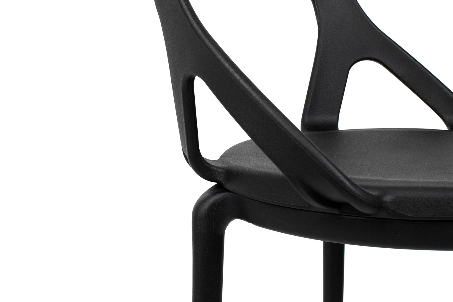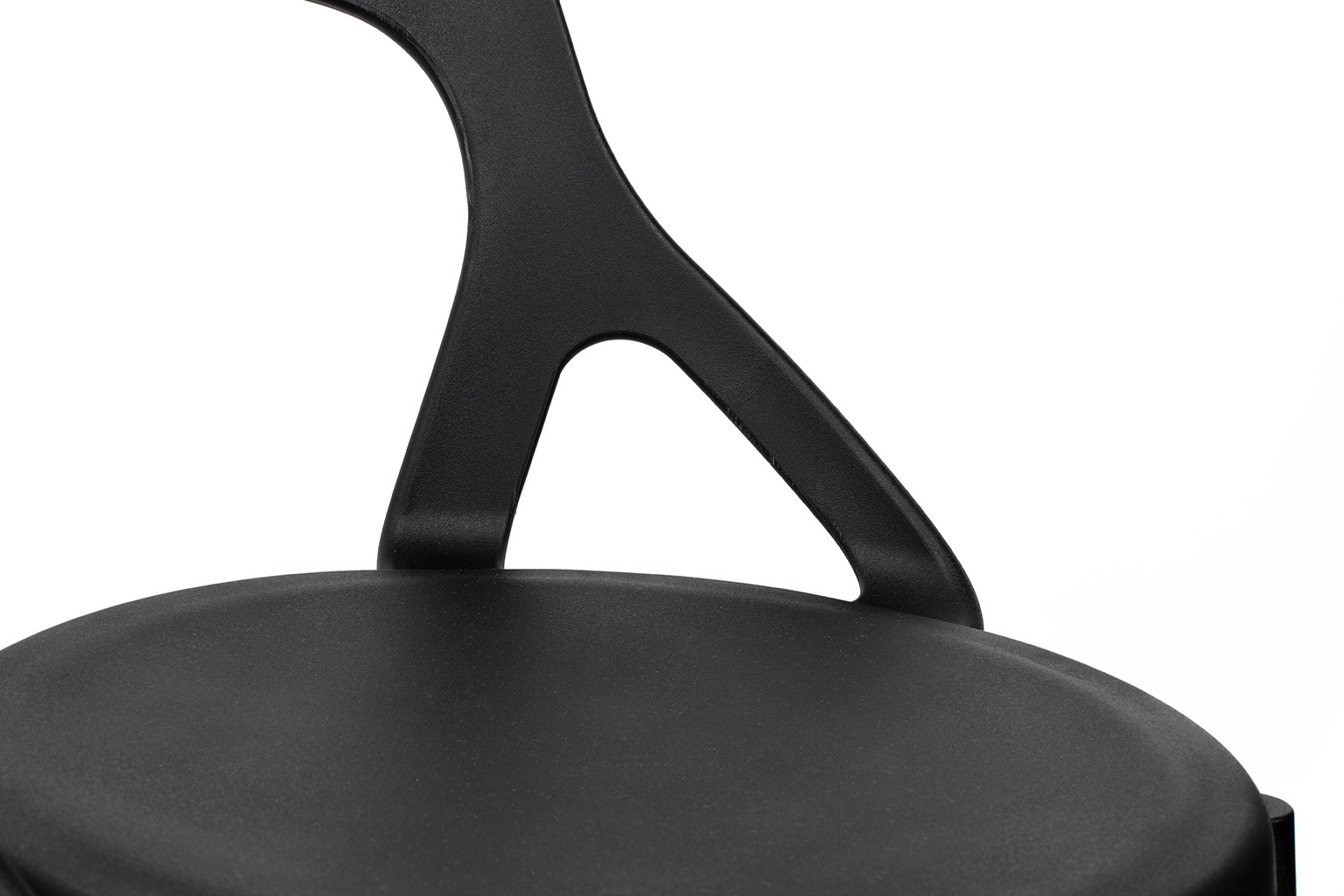 - Krzesło FORM czarne. Zostało wykonane w całości z polipropylenu w kolorze czarnym matowym. Okrągłe siedzisko oraz oparcie zapewniają odpowiedni komfort siedzenia. Wymiary: wys. 83 cm / szer. 46 cm / gł. 54 cm Wysokość do krawędzi siedziska: 45 cm Wysokość