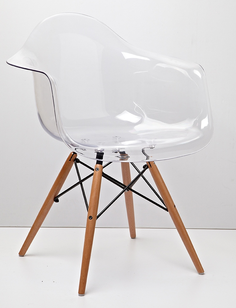- Krzesło DSP ICE WOOD ARM, siedzisko w całości zostało wykonane z transparentnego poliwęglanu. Łączenia ze stali w kolorze czarnym. Nogi z drewna bukowego. Dzięki swojej kontrukcji i zastosowaniu przezroczystego tworzywa. Doskonale sprawdzi się małych pomi