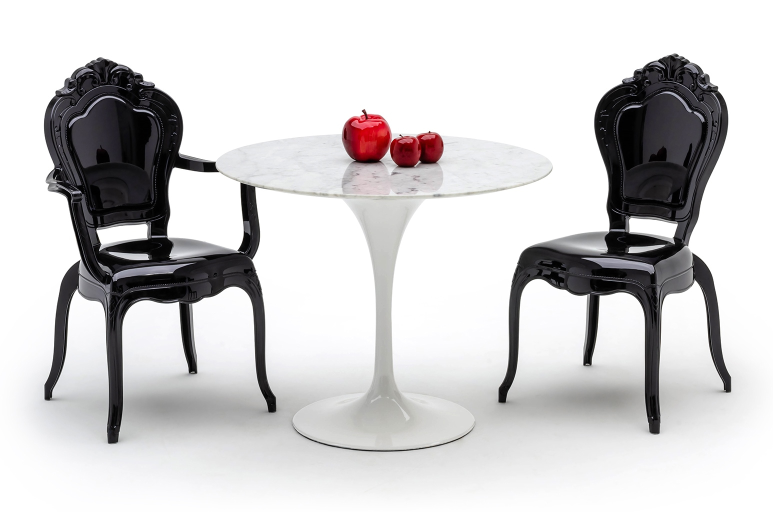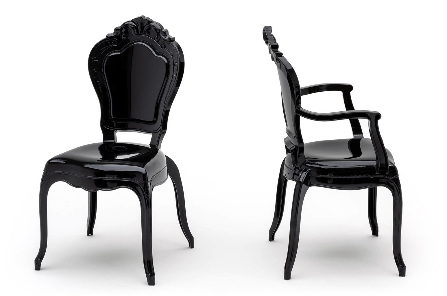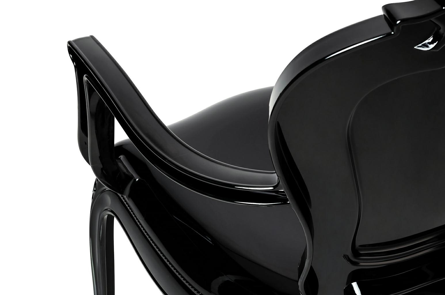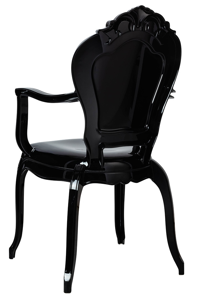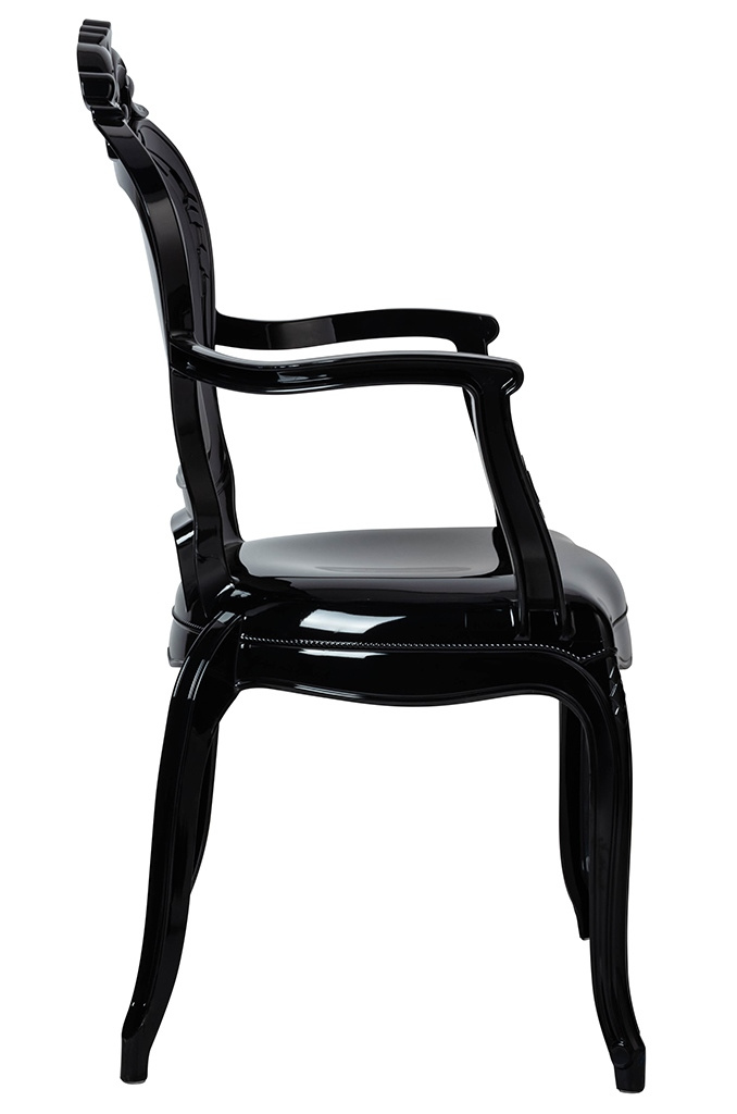 - Krzesło czarne King Arm. Nowoczesna i szykowna forma w stylu Glamour. Krzesło w całości zostało wykonane z wytrzymałego tworzywa sztucznego (Poliwęglan), cechującego się dużą wytrzymałością na obciążenie (do 125 kg), odpornością na uderzenia i co najważni