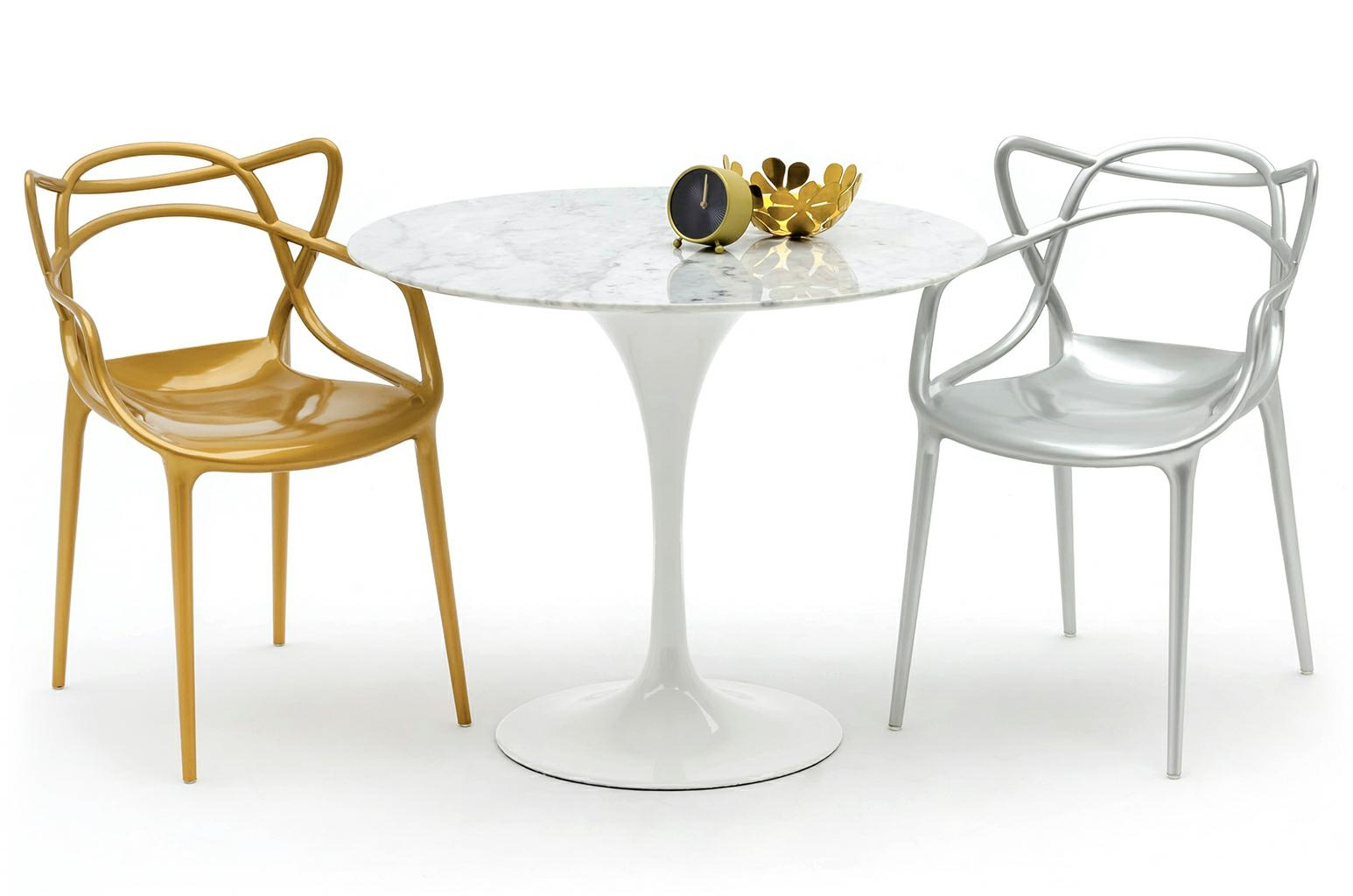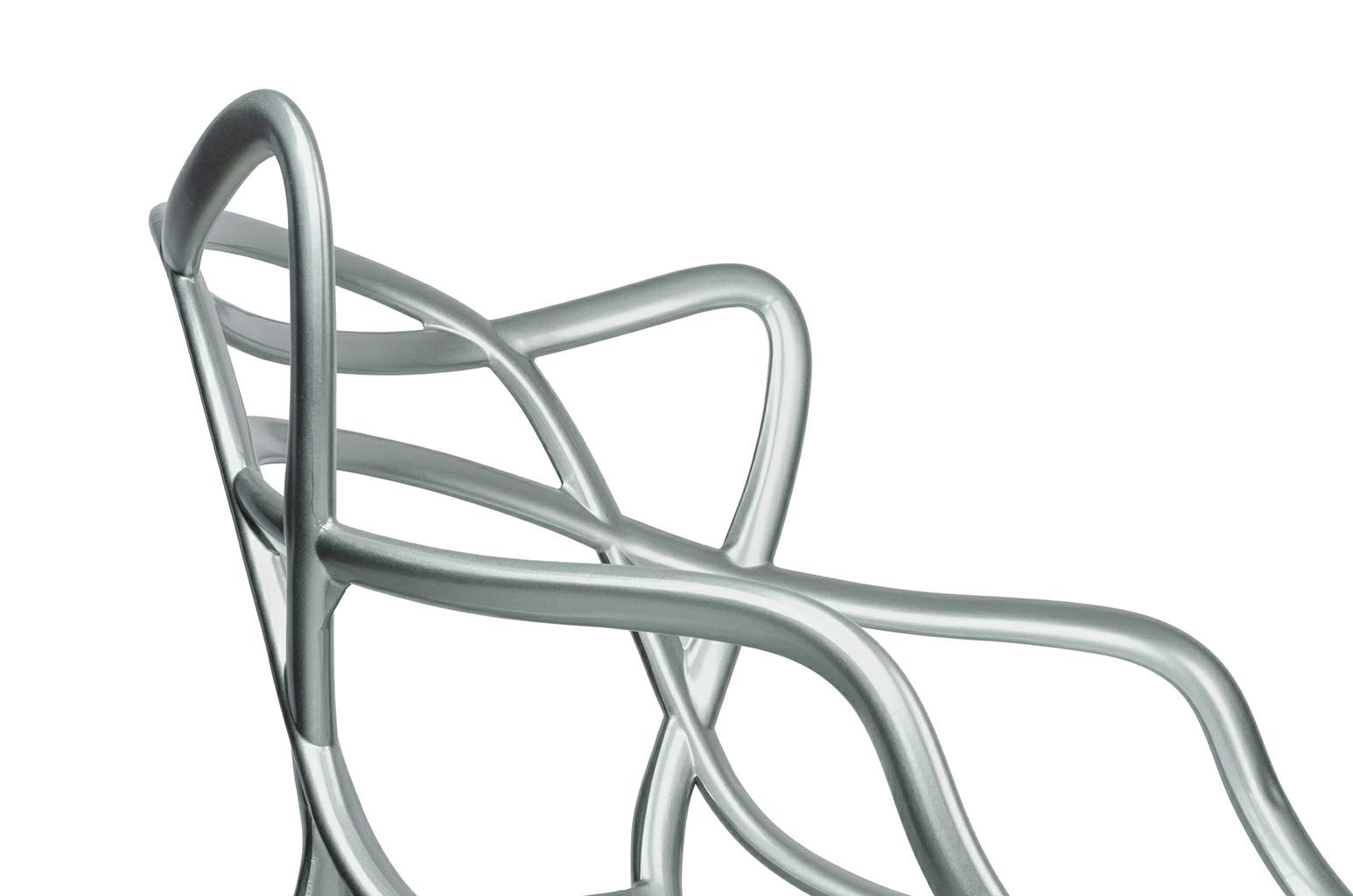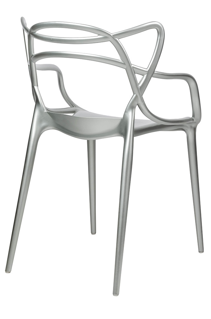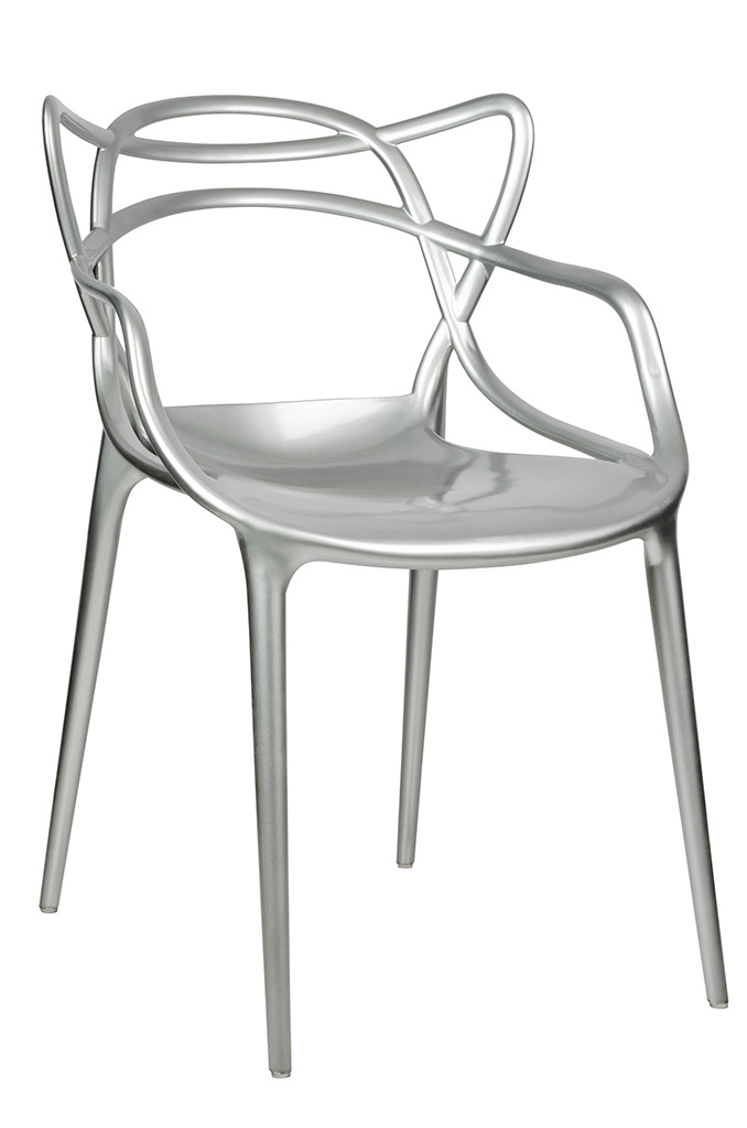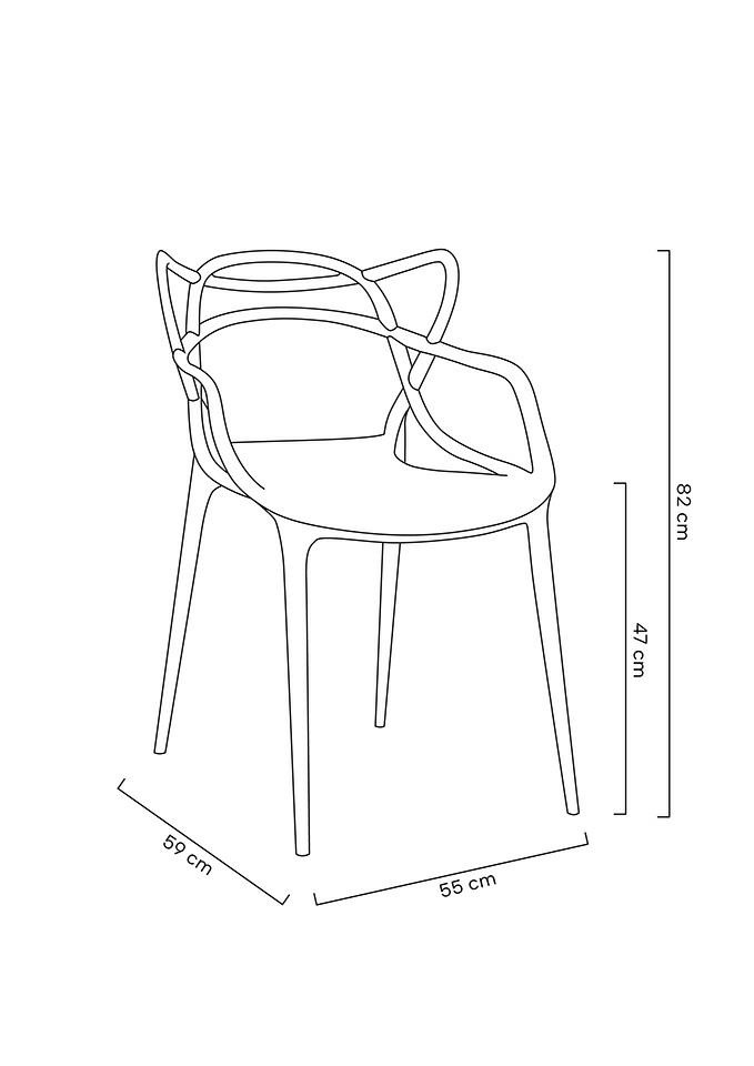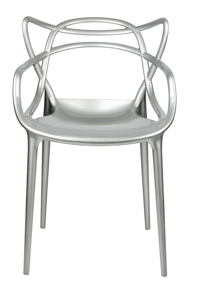 - LUXO wykonane zostało w całości z tworzywa sztucznego ABS w kolorze srebrnym błyszczącym. Wymiary: wys. 82 cm / szer. 55 cm / gł. 59 cm Wysokość do krawędzi siedziska: 47 cm Siedzisko: szer. 40 cm / gł. 45 cm Oparcie: wys. 37 cm / szer. 52 cm Rozstaw nóg:
