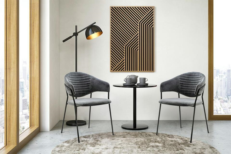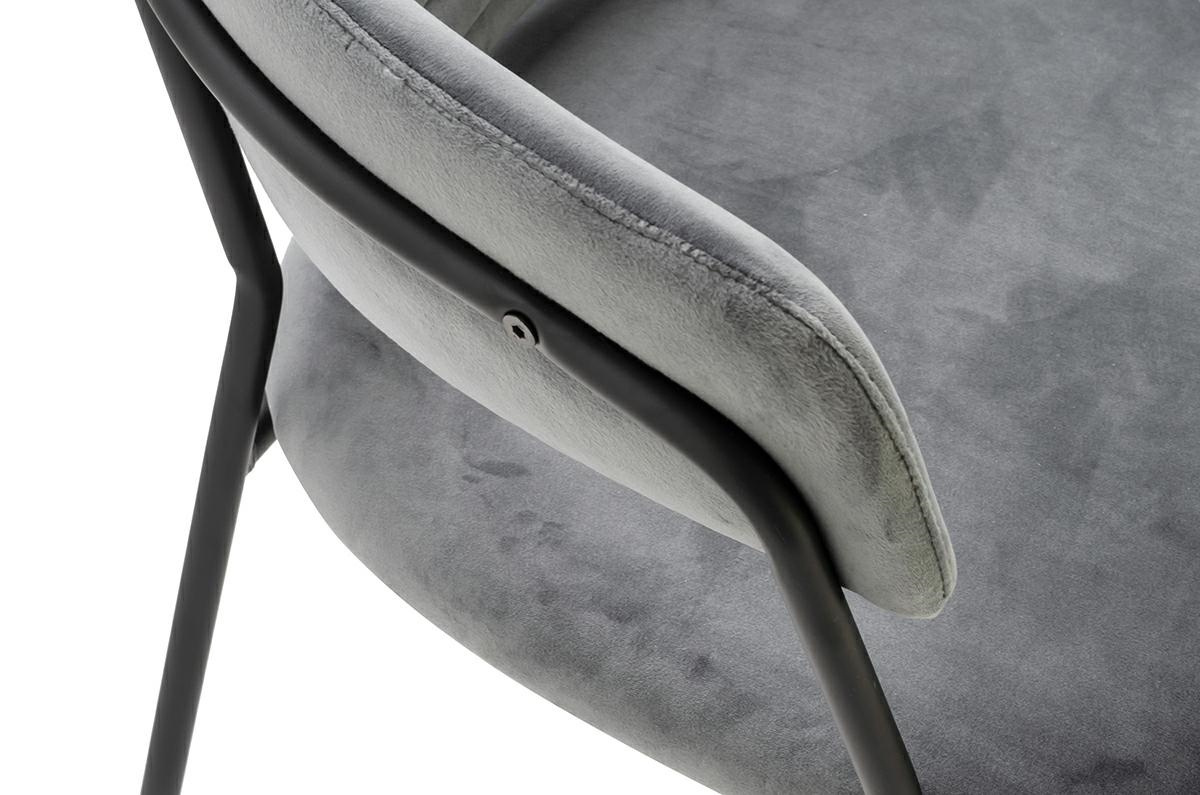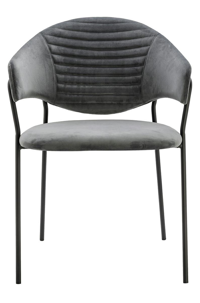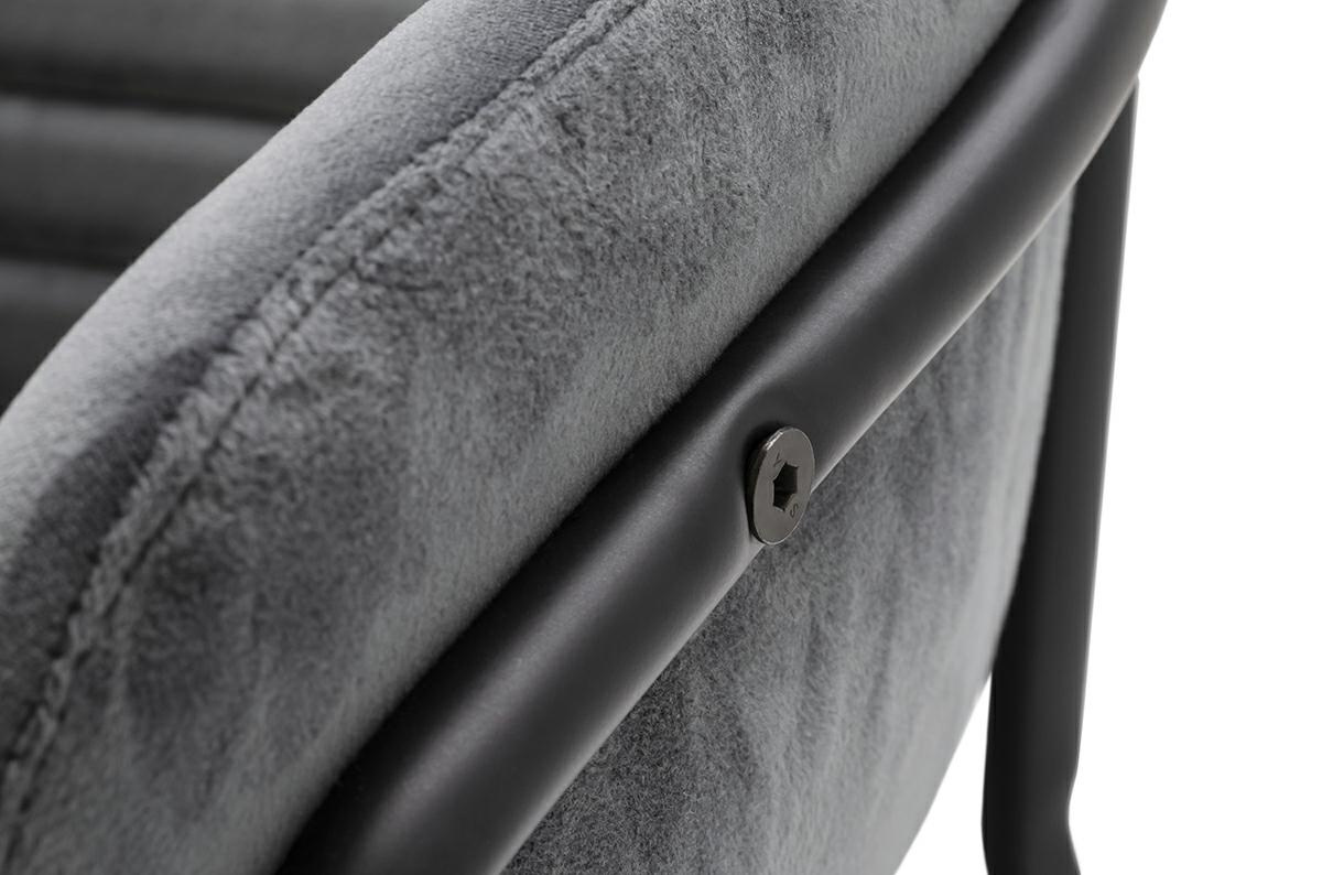 - Krzesło Naomi w kolorze ciemny szary. Siedzisko i oparcie tapicerowane miękkim i przyjemnym w dotyku welurem. Konstrukcja z metalu w kolorze czarnym z matowym wykończeniem. Naomi to doskonałe połączenie modnego weluru z klasyczną czernią. Elegancję podkre