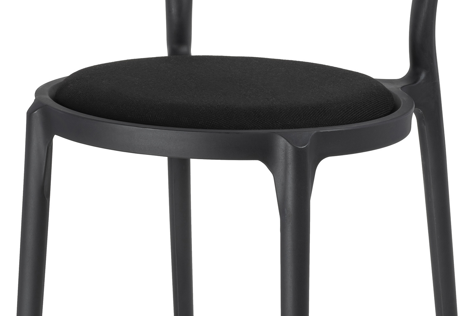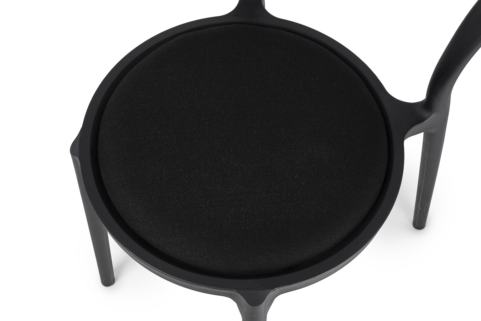 - Krzesło SLIM czarne. W całości wykonane z polipropylenu z materiałową poduszką w kolorze czarnym. Kształt został zaprojektowany, aby optycznie powiększyć przestrzeń. Nowoczesny, praktyczny design odnajdzie się w każdej aranżacji. Wymiary: wys. 83 cm / sze