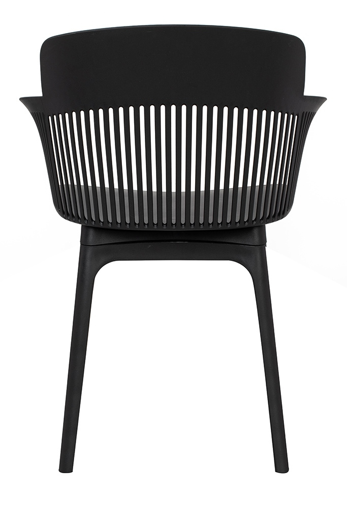 Krzesło TORRE czarne. Siedzisko oraz podstawa wykonane zostały w całości z polipropylenu w kolorze czarnym matowym. Nowoczesnym elementem jest ażurowe oparcie, które nadaje krzesłu lekkości. Szerokie siedzisko oraz podłokietniki zapewniają odpowiedni komfort użytkowania. Wymiary: wys. 79 cm / szer. 60,5 cm / gł. 52,5 cm Wysokość do krawędzi siedziska: 45,2 cm Wysokość do podłokietników: 66,5 cm Podłokietniki: dł. 29 cm / szer. 1,5 cm Siedzisko: szer. 49 cm / gł. 43 cm Oparcie: wys. 35,5 cm / szer. 46 cm Rozstaw nóg przód szer. 48,5 cm / tył szer. 42 cm / gł. 46,5 cm / wys. 47 cm Mozliwość sztaplowania: Nie Wymiary opakowania: 48 cm / 69 cm / 118 cm.