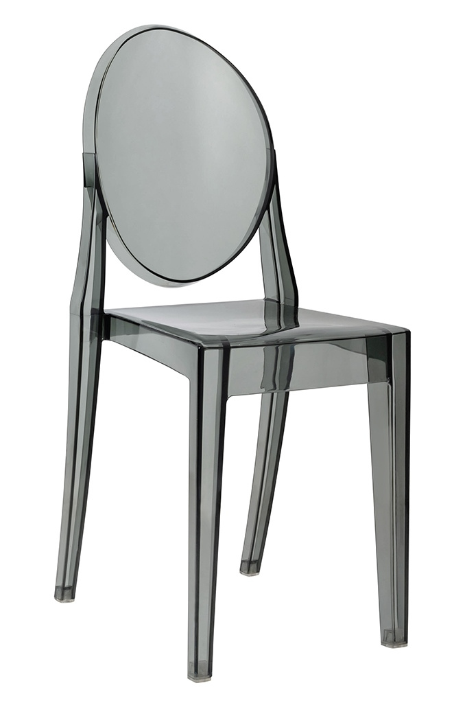 - Krzesło Victoria w całości wykonane zostało z dymionego poliwęglanu. Dzięki temu, optycznie zabiera mniej przestrzeni. Doskonale sprawdzi się w nowoczesnych i klasycznych wnętrzach. Wymiary: wys. 90,5 cm / szer. 38 cm / gł. 49,5 cm Wysokość do krawędzi si